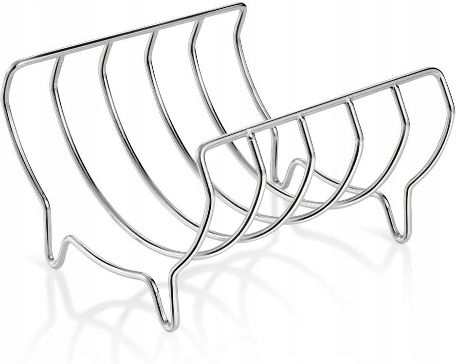 Ruszt do drobiu - Tescoma GrandCHEF Doskonały do pieczenia drobiu w całości. Drobiu nie trzeba obracać, piecze się równomiernie i z chrupiącą skórką na całej powierzchni. Po odwróceniu świetnie sprawdzi się również do pieczenia żeberek. Odpowiedni do wszystkich brytfann i piekarników Film prezentujący produkt: https://youtu.be/c9NIyy3dq5I O marce: Firma Tescoma to czeska marka i lider na światowym rynku producentów akcesoriów do kuchni i jadalni. Produkty marki Tescoma to wysoka jakość stosowanych materiałów i dbałość o idealne wykończenie. Akcesoria przeznaczone do kontaktu z żywnością są wykonane z materiałów bezpiecznych dla zdrowia. Asortyment firmy to ponad 2000 produktów idealnie sprawdzających się w kuchniach i gastronomii. Cechy przedmiotu: Marka: Tescoma Linia produktów: GrandChef Długość: 15 cm Szerokość: 16 cm Wysokość: 10 cm Użytkowanie w piekarniku: Tak Mycie w zmywarce: Tak Materiał wykonania: metal powlekany Waga: 200