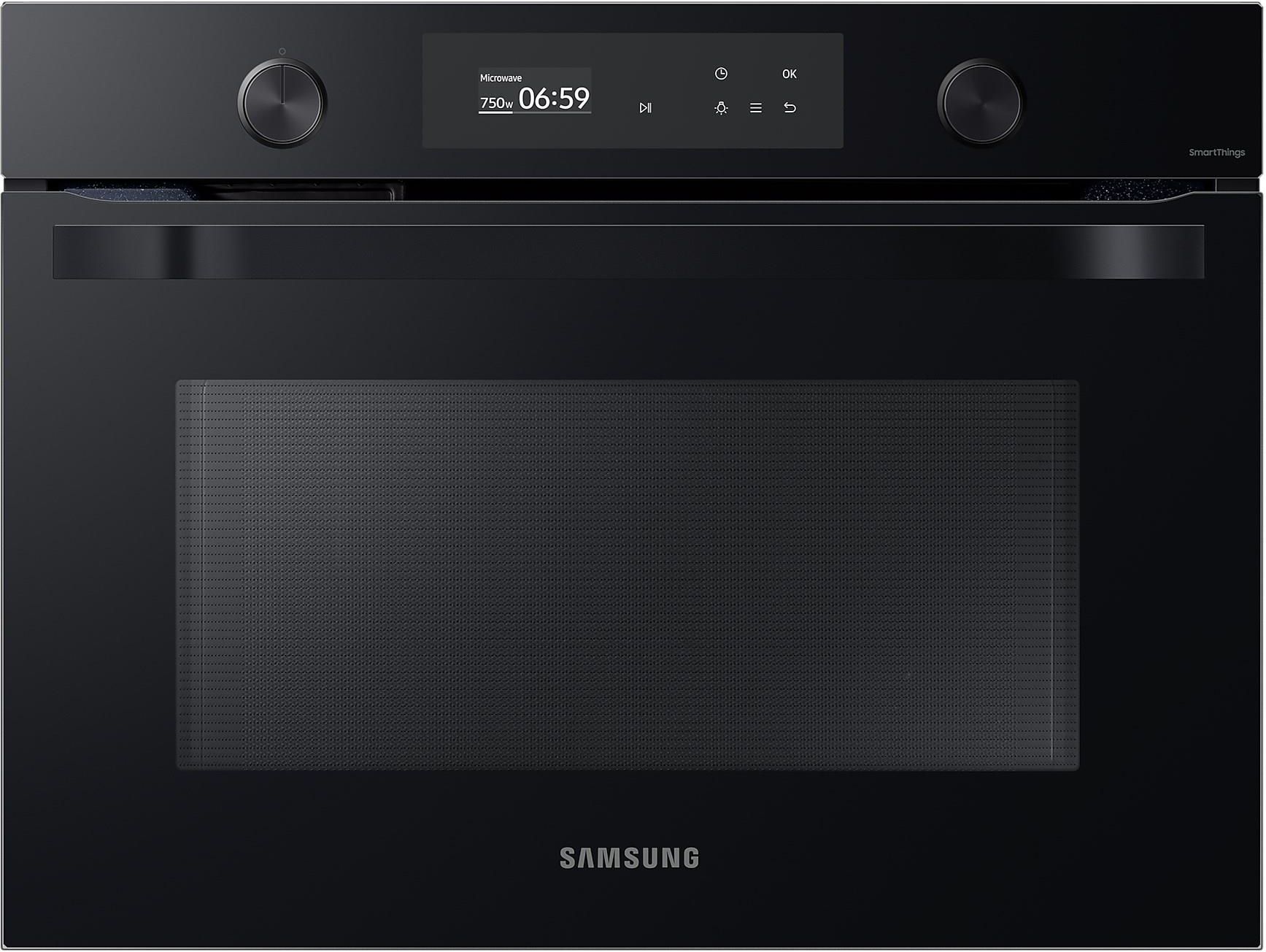 Kuchenka mikrofalowa do zabudowy Samsung NQ 50A6139BK, w kolorze czarnym, szerokość 59,5 cm, moc mikrofal 900 W, pojemność 50 litrów, z funkcją odtrzymywania ciepła, wbudowanym Wi-Fi, wyświetlaczem LCD, programami Auto, czyszczeniem parowym, sterowana dotykowo i pokrętłem Blokada rodzicielska Moduł WiFi - Zdalne monitorowanie pracy kuchenki Auto Cook i Auto Reheat - 15 automatycznych programów pieczenia Czyszczenie parą Steam Clean - Idealnie czysty piekarnik bez wysiłku Dane ogólneRodzaj urządzenia: Kuchnia mikrofalowaRodzaj montażu: Do zabudowy Pojemność kuchenki: 50 litrówKolor / wykończenie: Czarne szkło Funkcjonalność i komfort użytkowaniaRodzaj sterowania: Dotykowy + pokrętło Programy automatyczne: 15Rozmrażanie: 5 trybów automatycznychProgramy automatyczneTryb czyszczenia: ParowyBlokada rodzicielskaTimerPodtrzymywanie ciepłaWłączanie/wyłączanie dźwiękuUstawienie czasu (12H/24H) Podświetlenie (wł./wył.) Oświetlenie wewnętrzne: 40W (Halogen)Opcja językowaMateriał komory: Emalia ceramiczna Wyświetlacz: 2.25 " MONO - LCDTyp drzwi: PotrójneOtwieranie drzwi: OpuszczaneWbudowane Wi-FiKompatybilność z aplikacją SmartThings Moc i wydajnośćMoc Mikrofali: 900 WZużycie energii (mikrofalówka): 1650 WPodłączenie: 230 V / 50 Hz Akcesoria 1 x Taca ceramiczna Wymiary i wagaWymiary zewnętrzneWysokość: 45,6 cmSzerokość: 59,5 cmGłębokość: 57 cm Wymiary wycięciaWysokość: 44,6 cmSzerokość: 56 cmGłębokość: 54,9 cm Waga netto: 33,5 kg Waga brutto: 39 kg Gwarancja 24 miesiące Kuchenka Mikrofalowa Solo - Gotuj szybko i precyzyjnieGotuj lub podgrzewaj potrawy szybko i równomiernie bez wysiłku.Kuchenka mikrofalowa daje elastyczność w przygotowaniu różnorodnych, codziennych posiłków. Jej duża moc wyjściowa i równomierne rozprowadzanie ciepła zapewniają szybkość i dokładność w przygotowaniu każdego dania. Wyświetlacz LCD i prosta obsługa - Prostszy sposób na gotowanieCiesz się prostszym i bardziej intuicyjnym sposobem na gotowanie z informacyjnym i zrozumiałym przewodnikiem na ekranie LCD. Rozpoczyna się wyborem mocy i czasem gotowania a także programami, których używasz najczęściej. Możesz również ukryć tryby i ustawienia, których nie używasz. My Assistant Cook zapewni cenne wskazówki i powiadomienia. Wygodna kontrola z każdego miejsca - Łączność Wi-FiOszczędzaj czas i rób więcej dzięki połączeniu Wi-Fi. Monitoruj pracę kuchenki w każdym momencie i w każdym miejscu za pomocą Aplikacji*. Pomaga też naprawiać usterki!* Dostępne na urządzeniach z iOS oraz systemem Android. Wymagane połączenie z Wi-Fi. Czyszczenie parowe - Pozbądź się najtrudniejszych plamDzięki czyszczeniu parowemu z łatwością usuniesz resztki jedzenia i trudne plamy w komorze piekarnika. Po prostu wlej wodę na dno piekarnika i włącz tryb czyszczenia. Pozostałości zabrudzeń będziesz mógł zetrzeć bez problemu. 50 l pojemności - Możesz gotować więcejKuchenka oferuje aż 50 l pojemności, dzięki czemu możesz przygotować więcej potraw jednocześnie, np. kilka tac z potrawami, lub z łatwością przygotowywać większe dania, choćby imponujących rozmiarów pieczeń. Ceramiczne wnętrze - Wysoka efektywność i odpornośćCeramiczna i specjalnie profilowana komora urządzenia zapewnia nie tylko wysoką efektywność jego pracy, ale dzięki warstwie emaliowanej jest także wyjątkowo odporna na uszkodzenia i znacznie ułatwia czyszczenie wnętrza kuchenki.