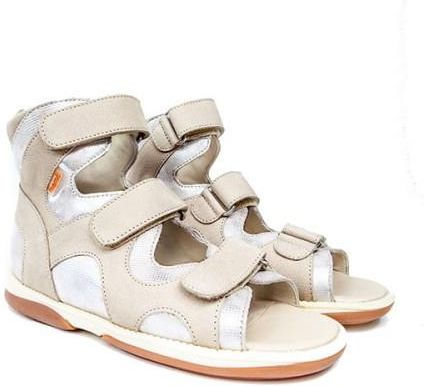 Wysokie diagnostyczno-korekcyjne sandały profilaktyczne dla dziewczynek, których wyjątkowa konstrukcja, obcas Thomasa, sztywny zapiętek i podeszwa diagnostyczna Memo tworzą niezwykłe połączenie komfortu i właściwości prozdrowotnych. Doskonale sprawdzają się jako codzienne buty do szkoły czy buty korekcyjne dla dziecka w wieku przedszkolnym i szkolnym. Idealne także na spacery na świeżym powietrzu. Skórzane buty dla dzieci stworzone są ze stylowej kompozycji kolorystycznej naturalnych skór i ozdobnych detali. Obuwie przystosowane do wkładki ortopedycznej Memo. Rozmiary: 30-38 INSTRUKCJA UŻYWANIA Zasady użytkowania: Obuwie należy zakładać i zdejmować rozsznurowane. Należy unikać przemoczenia obuwia. W przypadku silnego przemoczenia nie należy suszyć obuwia w bezpośredniej bliskości urządzeń emitujących ciepło. Obuwie należy rozsznurować przed suszeniem. Włożenie papieru do środka obuwia pozwoli na uniknięcie deformacji kształtu. Obuwie ze skór typu nubuk i welur są znacznie mniej odporne na przemakanie. Nie wolno prać obuwia skórzanego w pralce. Gorąca woda, detergenty, wirowanie powodują pogorszenie kondycji obuwia – traci ono pierwotny kształt i wygląd oraz trwałość. Codziennie należy zmieniać użytkowane obuwie, pozwoli to butom na pozbycie się nadmiaru wilgoci. Obuwie należy użytkować zgodnie z przeznaczeniem. Nie należy kupować obuwia za dużego lub małego. Konserwacja obuwia: Skóra licowa: Po oczyszczeniu obuwia stosować należy barwne pasty zgodnie z przeznaczeniem i kolorem wierzchu. Po wchłonięciu pasty w skórę, obuwie polerować szczotką o miękkim włosiu lub flanelką, do momentu uzyskania połysku. Skóra typu nubuk, welur: Po oczyszczeniu obuwia należy stosować środki impregnujące w aerozolu do odświeżania skór typu nubuk i welur, zgodnie z kolorem wierzchu. Nie zaleca się używania past i kremów. Wskazania: Potrzeba stabilizacji i korekcji w poniższych schorzeniach zasadniczych oraz diagnostyka poniższych schorzeń: asymetria długościowa kończyn dolnych asymetria stóp, inne zaburzenia biomechaniczne stawów biodrowych, stawów kolanowych oraz stawów, skokowych wymagające korekcji/stabilizacji. Jak dobrze dobrać rozmiar: Aby dobrze dobrać rozmiar obuwia dla dziecka należy postępować zgodnie z czynnościami: Postaw stopę dziecka na kartce papieru, w taki sposób by dziecko równomiernie obciążało obie stopy. Obrysuj stopę dziecka za pomocą ołówka, trzymając go pod kątem prostym do podstawy/kartki. Zmierz długość obrysu Dobierz odpowiedni rozmiar, uwzględniając dopuszczalny zapas w obuwiu maksymalnie do 1 cm więcej niż obrys stopy. Spójrz na załączoną tabelę z długością w cm poszczególnych rozmiarów obuwia i dopasuj rozmiar np. długość obrysu stopy to 12,5 cm zatem odpowiednim rozmiarem buta dla dziecka jest rozmiar 20, którego długość w centymetrach to 13,3.