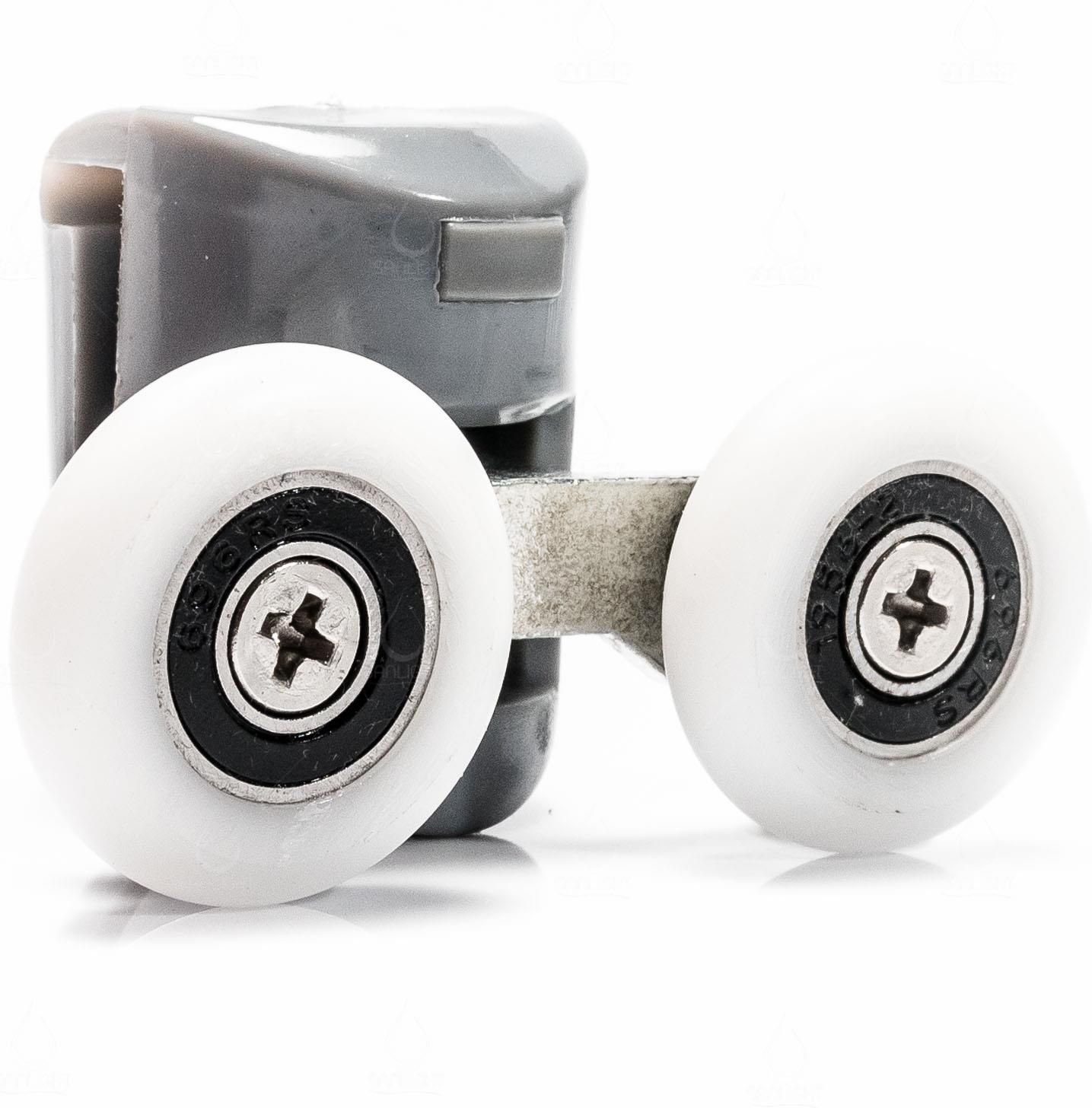 ROLKA PODWÓJNA GÓRNA model : ROL-01-25 ilość : 1szt średnica kółka: 25mm Oferujemy Państwu solidną rolkę do kabiny prysznicowej z łożyskiem typu EASY MOVE. Korpus rolki został wykonany z wytrzymałego tworzywa sztucznego, stali nierdzewnej i kauczuku. Materiał wykonania wózek i śruby wykonane są ze …