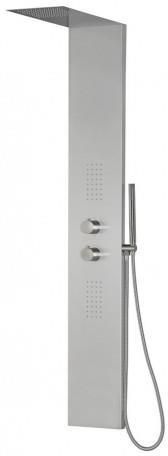 Panel prysznicowy Grace Wersja ze stali nierdzewnej rozmiar 220 x 1450 mm Opcja montażu na ścianie lub w narożniku dysze z funkcją odkamieniania - kamień można łatwo usunąć z dysz poprzez ich umycie Wielkoformatowa głowica prysznicowa SLIM, przepływ 12 l/min przy ciśnieniu 3 barów dysze boczne do …