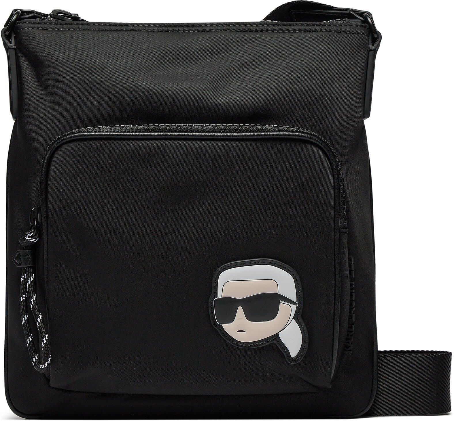 Czarna męska torba K/Ikonik 2.0 Nylon Flat CB marki Karl Lagerfeld. Posiada jedną komorę oraz jedną wsuwaną kieszeń wewnątrz, a także dodatkową wsuwaną kieszeń na zewnątrz. Torba zamyka się na zamek i jest wyposażona w regulowany pasek.