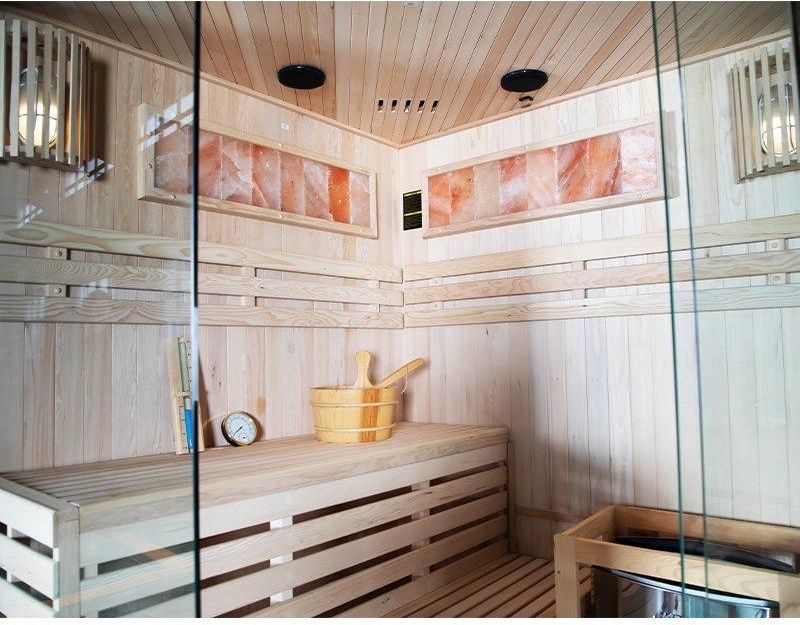 SAUNA FIŃSKA WYSOKOTEMPERATUROWA Z PIECEM KEMI4/HARVIA 6KW 4-5 OSOBOWA 150x150 CM Model: KEMI4 Sauna fińska tradycyjna, znana również jako sauna sucha, to miejsce, gdzie temperatura powietrza sięga od 60 do 110 stopni Celsjusza, a wilgotność oscyluje w granicach 5-15%. Osiągnięcie tak wysokiej temperatury możliwe jest dzięki specjalnemu piecowi, który rozgrzewa kamienie. Wnętrze kabiny zaś wzbogacone jest o wygodne siedziska wykonane z drewna jodły kanadyjskiej. Korzystanie z tradycyjnej sauny przynosi wiele korzyści dla naszego samopoczucia i zdrowia. Już po kilku sesjach można odczuć wewnętrzne ciepło, które wpływa pozytywnie na nasze ciało i umysł. Regularne odwiedzanie sauny stymuluje biologiczne przemiany w organizmie, które są niezbędne do utrzymania homeostazy i równowagi psychofizycznej. Jednym z kluczowych efektów terapeutycznych sauny fińskiej jest lipoliza - proces rozpadu trójglicerydów i lipidów komórek tkanki tłuszczowej. Ta skuteczna terapia zwalcza celulit i pomaga ujędrnić ciało. Ogrzewanie organizmu w saunie wpływa na przyspieszenie krążenia, co wspomaga eliminację toksyn z organizmu i poprawia ogólną kondycję skóry. Oprócz korzyści dla ciała, sauna fińska tradycyjna ma również pozytywny wpływ na nasz umysł. Relaksujący i kojący klimat pozwala nam oderwać się od codziennego stresu i napięcia, co z kolei przyczynia się do ogólnego poczucia lepszego samopoczucia i odprężenia. Tradycyjna sauna fińska to nie tylko miejsce, gdzie można poczuć fizyczne ciepło, ale również odkryć korzyści dla zdrowia i dobrej kondycji zarówno ciała, jak i umysłu. Jej oddziaływanie na organizm, terapeutyczna moc oraz relaksacyjny charakter sprawiają, że jest to jedno z najpopularniejszych i najbardziej cenionych miejsc w kulturze fińskiej i na świecie. Dodatkowo sauna wyposażona jest w 2 duże lampy solne które nadają niepowtarzalnego klimatu, oraz działają lecznicze na drogi oddechowe i skórę. Dane techniczne Marka:HydrosanSzerokość:150 cmDługość:150 cmWysokość:200 cmRodzaj:fińska-tradycyjna Ilość miejsc:4-5Zasilanie:380V/50Hz Drzwi:szklane 8 mm transparentnePiec:HARVIA VEGA BC60 Materiał:drewno - jodła kanadyjskaGrubość ścianki:55 mm Łączna moc:6000 W (6KW)Ilość paneli/lamp solnych:2x (po 8 cegiełek) KEMI4 jest sauną uniwersalną prawo/lewo stroną, czyli drzwi można zamontować tak, by otwierały się na lewą, bądź prawą stronę. WYPOSAŻENIE SAUNY: * Drzwi szklane hartowane o grubości 8mm * Piec HARVIA VEGA BC 60 o mocy 6000W (6KW) z kamieniami * KOLOROTERAPIA LED: oświetlenie wielokolorowe po całej szerokości sauny w oparciu na plecy, 7 kolorów * Oświetlenie wewnętrzne: 2 LAMPY montowane na suficie sauny * Ceber z chochlą na wodę do zraszania kamieni * Higrometr do pomiaru wilgotności * KLEPSYDRA do odmierzania czasu seansu w saunie * Kratka wentylacyjna w suficie * Wbudowany moduł Bluetooth z głośnikami * 2 DUŻE PANELE SOLNE(2x8 cegiełek) Ważna informacja * Aby połączyć się z sauną i cieszyć się z pełnią jej możliwości należy włączyć w telefonie funkcje Bluetooth, a następnie wyszukać urządzenie ,,ZZ-100" i połączyć się z nim. ZASTOSOWANIE: W leczeniu bólów mięśniowych, zwichnięć, kontuzji, zaburzeń krążenia, chorób stawów, Oczyszczanie skóry z toksyn, Poprawa samopoczucia, redukcja napięć i stresu, Wyraźna redukcja cellulitu. WŁAŚCIWOŚCI SAUNY SUCHEJ: Odtruwa i oczyszcza organizm ze szkodliwych toksyn Wzmacnia odporność i hartuje Poprawia krążenie krwi Wprawia w dobry nastrój ,relaksuje Rozluźnia i wyszczupla Wyraźna redukcja celulitu. Sauny wysokotemperaturowe cieszą się coraz większym zainteresowaniem nie tylko w Europie, ale także w Polsce, a to z kilku istotnych powodów: Oczyszczanie z toksyn: Przebywanie w saunie fińskiej pozwala na skuteczne oczyszczenie organizmu z toksyn. Wysoka temperatura powoduje intensywne pocenie się, co pomaga usuwać szkodliwe substancje z organizmu. Relaksacja i redukcja stresu: Sesje w saunie mają pozytywny wpływ na nasze samopoczucie, przynosząc uczucie głębokiego relaksu i redukując napięcie spowodowane stresem. Odchudzanie i spalanie tkanki tłuszczowej: Sauna tradycyjna sucha jest znana z właściwości odchudzających, ponieważ podczas jednego seansu można spalić nawet do 300 kalorii. Dodatkowo, korzystanie z sauny przyczynia się do efektywnego spalania tkanki tłuszczowej. Wygodne miejsca siedzące i leżące: W większości saun tradycyjnych dostępne są zarówno wygodne miejsca siedzące, jak i leżące, co pozwala na relaksujący wypoczynek podczas sesji. Pozytywny wpływ na układ krążenia i serce: Regularne korzystanie z sauny tradycyjnej korzystnie wpływa na układ krążenia, poprawiając pracę serca oraz regulując skoki ciśnienia. Rekomendacja dla określonych dolegliwości: Szczególnie osoby z napięciem mięśni grzbietu, przewlekłym reumatoidalnym zapaleniem stawów i kontrolowaną astmą oskrzelową otrzymują zalecenia odnośnie przebywania w saunach tradycyjnych, ponieważ może to przynieść im ulgę i poprawić komfort życia. Terapia solą: Terapia solą w saunie łączy korzyści ciepła sauny z leczniczymi właściwościami soli, poprawiając jakość powietrza i wspierając zdrowie dróg oddechowych. Dodatkowo, ta metoda przyczynia się do relaksacji i detoksykacji skóry, oferując głębokie odprężenie i poprawę samopoczucia. Dzięki wymienionym korzyściom sauny wysokotemperaturowe zyskują coraz większą popularność wśród osób szukających zdrowia, relaksu i odprężenia. Regularne korzystanie z tradycyjnej sauny może pozytywnie wpłynąć na nasze ciało i umysł, dlatego zyskuje tak wielu zwolenników zarówno w Europie, jak i w Polsce. Zalecamy korzystanie z sauny suchej dwa razy w tygodniu, aby cieszyć się pełnymi korzyściami dla zdrowia. Wejście do sauny: Rozpoczynamy sesję, wchodząc do sauny, gdzie tem