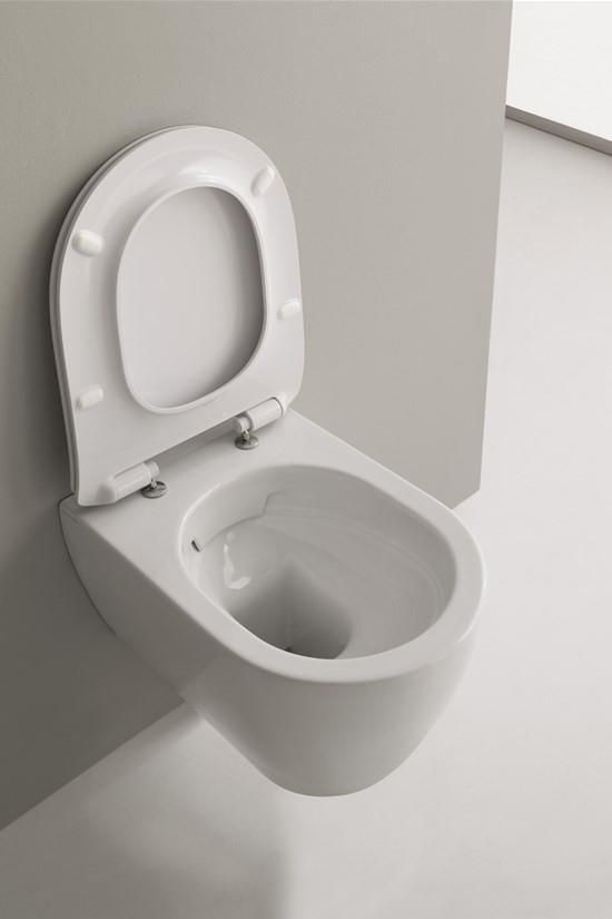 Scarabeo Moon 50,5x36 Lawa 5520Cl37 Miska WC Scarabeo Moon to kluczowy element każdej łazienki, który łączy w sobie nowoczesne technologie z eleganckim wyglądem. Jej wysoka jakość oraz estetyka sprawiają, że jest to idealny wybór dla osób, które cenią sobie komfort i styl. Dzięki przemyślanej konstrukcji, ten model z pewnością spełni oczekiwania nawet najbardziej wymagających użytkowników. Kluczowe cechy produktu Aby pomóc w podjęciu decyzji, warto zwrócić uwagę na następujące cechy miski WC Scarabeo Moon: Materiał: Wysokiej jakości ceramika sanitarna, Wymiary: 50,5 cm długości, 36 cm szerokości, Typ montażu: Wisząca, Kolor: Biały, Rodzaj siedziska: Możliwość wyboru siedziska standardowego lub z funkcją wolnego opadania, Mechanizm spłukiwania: Opcje spłukiwania, w tym system oszczędzający wodę, co czyni produkt bardziej ekologicznym. Kształt i typ miski WC Miska WC Scarabeo Moon charakteryzuje się nowoczesnym, okrągłym kształtem, który doskonale wpisuje się w różnorodne aranżacje wnętrz. Jej wymiary (50,5 cm na 36 cm) pozwalają na zastosowanie zarówno w mniejszych, jak i większych łazienkach. Jako model wiszący, ta miska zapewnia nie tylko oszczędność miejsca, ale także ułatwia utrzymanie porządku, co jest wyjątkowo istotne w codziennym użytkowaniu. Materiał i trwałość Scarabeo Moon to produkt wykonany z ceramiki sanitarnej, co gwarantuje wysoką odporność na uszkodzenia oraz długowieczność. Ceramika jest materiałem łatwym w czyszczeniu, co pozwala na szybkie utrzymanie higieny w łazience. Dodatkowo, biały kolor nadaje świeżości i czystości, sprawiając, że miska doskonale komponuje się z innymi elementami wyposażenia. Mechanizm spłukiwania i rodzaj spłuczki Miska WC Scarabeo Moon, mimo braku szczegółowych informacji w opisie, może być wyposażona w innowacyjne mechanizmy spłukiwania, takie jak podwójny system spłukiwania. Dzięki temu użytkownicy mogą zaoszczędzić wodę, a także zwiększyć efektywność spłukiwania, co jest korzystne zarówno dla domowego budżetu, jak i dla środowiska. Tego rodzaju nowoczesne rozwiązania są ważnym atutem tego modelu. Rodzaj siedziska WC W przypadku miski WC Scarabeo Moon dostępne są różnorodne opcje siedzisk, co pozwala na dopasowanie produktu do indywidualnych preferencji użytkowników. Można wybierać spośród siedzisk standardowych oraz modeli z funkcją wolnego opadania, co zwiększa komfort użytkowania. Dla osób poszukujących jeszcze większej funkcjonalności, dostępne są również siedziska bidetowe, które umożliwiają mycie wodą. Montaż i wymagania Montaż miski WC Scarabeo Moon jest stosunkowo prosty, jednak użytkownicy powinni upewnić się, że ściana jest odpowiednio przygotowana do zamontowania tego modelu. Skonsultowanie się z fachowcem może pomóc w zapewnieniu bezpieczeństwa oraz prawidłowego zamocowania. Akcesoria montażowe zazwyczaj znajdują się w zestawie, co ułatwia instalację. Rozmiary i odległości Kompaktowe wymiary miski (50,5 cm długości i 36 cm szerokości) sprawiają, że jest to idealne rozwiązanie do różnorodnych aranżacji łazienkowych. Przy zakupie warto zwrócić uwagę na wymagane minimalne odległości od ścian oraz innych elementów wykończenia, co zapewni wygodę korzystania. Zawartość opakowania Przy zakupie miski WC Scarabeo Moon użytkownik otrzymuje kompletny produkt, który zawiera wszystkie niezbędne elementy do montażu, takie jak miska, uchwyty montażowe oraz elementy spłukujące. Dzięki temu można uniknąć konieczności dokupowania dodatkowych akcesoriów.
