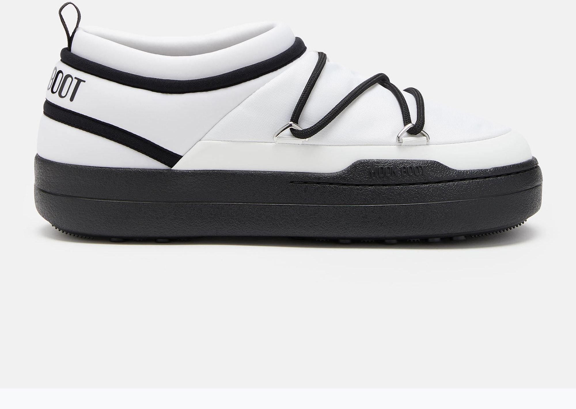 Buty Damskie Moon Boot Park Icon Nowa ikona Park wykorzystuje przetestowany projekt inspirowany astronautami Moon Boot i kieruje go w stronę codziennych przygód w mieście. Wynik? Łatwe w noszeniu, wsuwane tenisówki o lekkiej jak piórko, wyjątkowo elastycznej konstrukcji, która sprawdza się zarówno zimą, jak i pomiędzy porami roku. Kontrastowy nadruk z logo i rurkowe sznurowadła: charakterystyczne elementy nawiązujące do oryginalnej sylwetki. Nadruk z logo na pięcie Sznurówki rurkowe krzyżowe Podeszwa środkowa z pianki EVA z wytłoczonym logo Podeszwa z bieżnikiem z gumy termoplastycznej Wsuwane