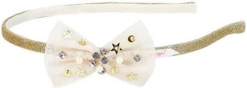 Souza! Opaska z kokardką biało-złota Pien Opaska z kokardą Pien holenderskiej marki Souza! Połyskująca złota akrylowa opaska wyściełana jest od spodu białą wstążką. Zdobi ją biała tiulowa kokardka z naszytymi na nią kryształkami, cekinami i perełkami Opaska jest lekka, delikatna i przyjemna w …