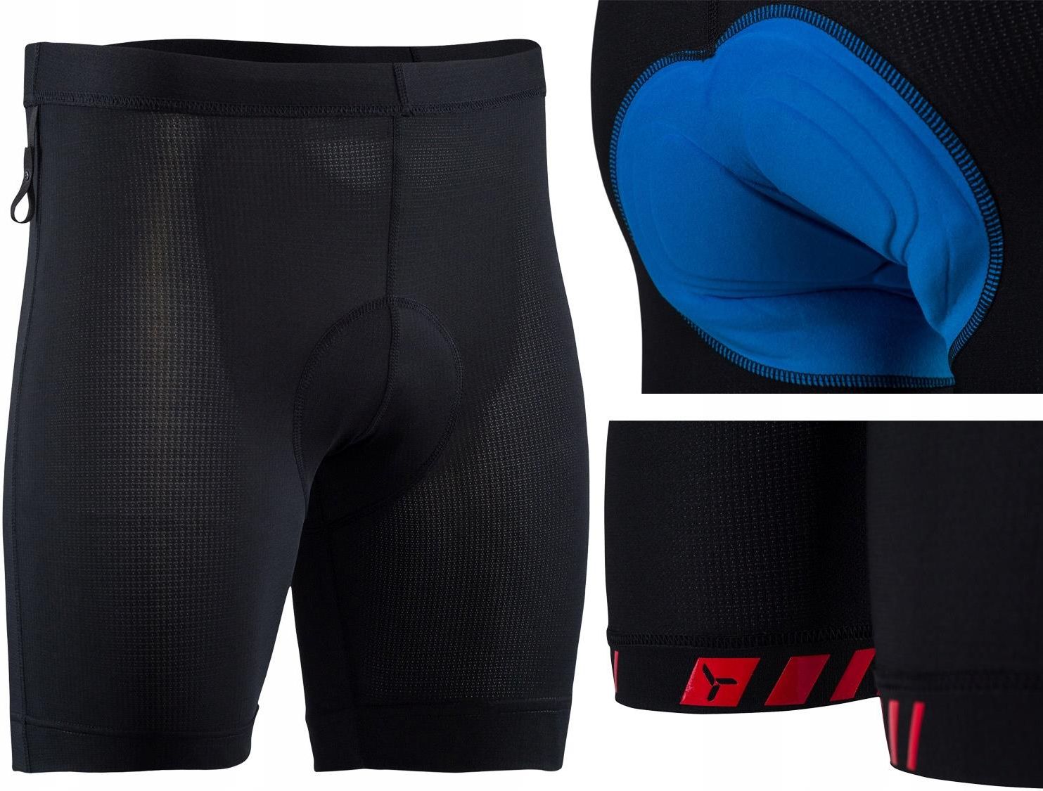 Męskie wewnętrzne spodenki odpinane WP373V black Oddzielne wewnętrzne męskie spodnie z wkładką rowerową. W pasie znajdują się trzy pętle dla lepszego dopasowania spodni MTB. Nogawki są zakończone z antypoślizgowym elastycznym paskiem. Aukcja dotyczy rozmiaru: XL rowerowa wkładka coolmax płaski szew …