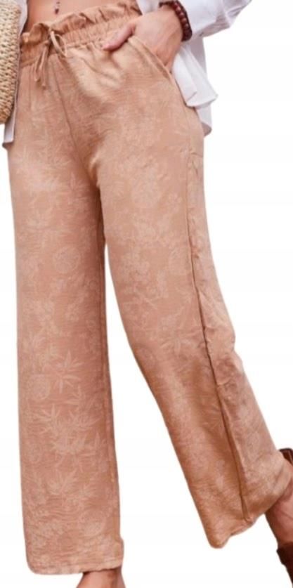 Spodnie Letnie Damskie Szeroka Nogawka Luźne Kwiaty M/L BEŻOWE Warszawa