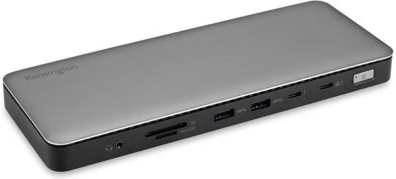 Stacja dokująca SD5760T Thunderbolt™ 4 z podwójnym wideo 4K jest idealna dla osób pracujących w domu lub biurze. Obsługuje najnowsze MacBooki, urządzenia Surface i inne laptopy wyposażone w Thunderbolt™ 4, zapewniając podłączenie typu plug and play do wszystkich funkcji, jakie mogą być Ci potrzebne, aby zwiększyć swoją produktywność dzisiaj i w przyszłości. Model SD5760T nie wymaga pobierania sterowników, zapewniając obsługę plug and play, i współpracuje z systemami Windows oraz macOS, a także urządzeniami wyposażonymi w Thunderbolt 4, Thunderbolt 3, USB4 i USB-C. Stacja oferuje elastyczny wybór portów: pojedyncze wideo 8K przy 60 Hz przez przedni port TB4 lub podwójne wideo 4K przy 60 Hz przez dwa porty HDMI lub jeden port TB4. Aby zapewnić najwyższą produktywność, SD5760T obsługuje Power Delivery do 96 W, prędkość transferu danych do 40 Gb/s, łączenie szeregowe i ma 13 umożliwiających łączność portów. Zawiera oprogramowanie Kensington DockWorks™ i zapewnia 3-letnią ograniczoną gwarancję. Interfejs: USB-C / Thunderbolt 4 USB 3.2 Gen. 2: 2 szt. USB 3.2 Gen. 1: 2 szt. USB-C: 1 szt. RJ-45 (LAN): 1 szt. HDMI: 2 szt. Thunderbolt: 2 szt. Audio: 1 szt. (3,5 mm - słuchawki / mikrofon) Power Delivery: 96 W Kolor dominujący: srebrny, czarny Dołączone akcesoria: zasilacz Wymiary (wys. x sz. x gł.) 22 x 85 x 225 mm Gwarancja: 36 miesięcy (gwarancja producenta)