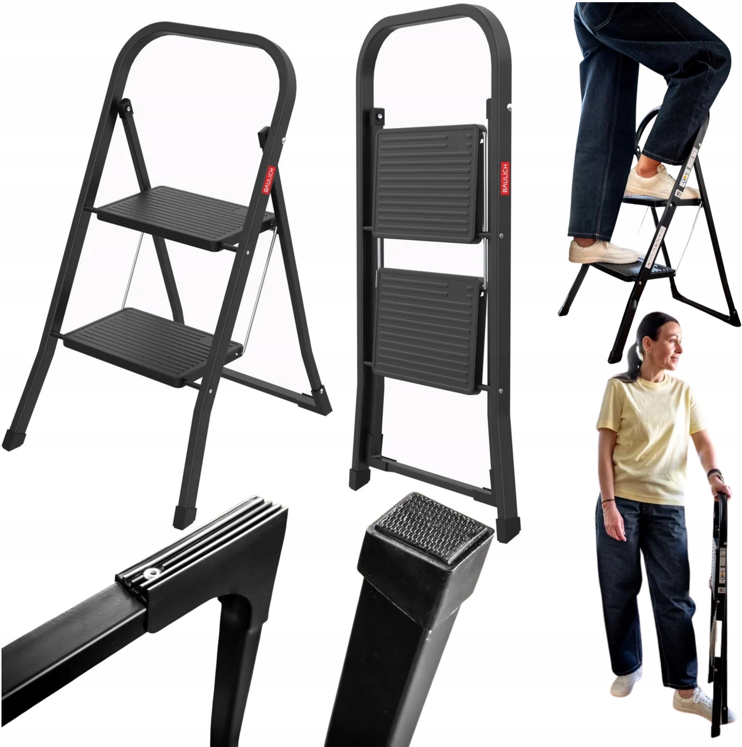 Stalowa drabinka domowa 2-stopniowa składana czarna Warszawa