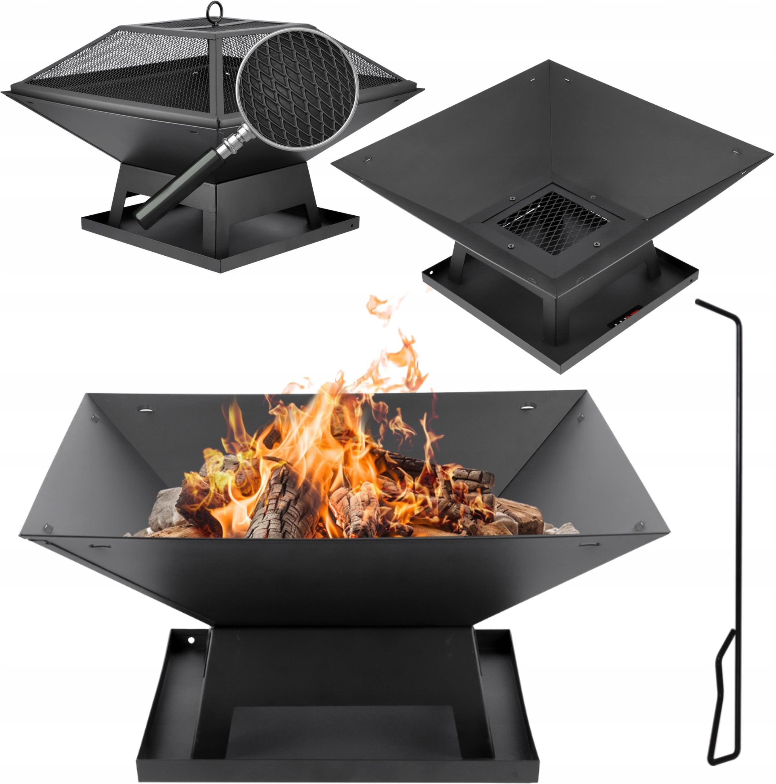 STALOWE PALENISKO OGRODOWE Z POKRYWĄ I POGRZEBACZEM Stylowe palenisko – ognisko w Twoim ogrodzie Praktyczne palenisko stalowe z pokrywą to idealne rozwiązanie dla osób, które chcą cieszyć się ogniem w bezpieczny sposób. Świetnie sprawdza się jako źródło ciepła, światła i klimat w ogrodzie, na tarasie czy podczas spotkań z rodziną i przyjaciółmi. Najważniejsze cechy Funkcja ogniska – doskonałe do palenia drewna lub węgla � Pokrywa z siatką – skutecznie ogranicza wydostawanie się iskier 🛠️ Pogrzebacz w zestawie – ułatwia obsługę ognia i podnoszenie pokrywy 🧱 Podwyższona misa – zabezpiecza drewno przed wypadaniem 🧹 Stalowy popielnik – ułatwia usuwanie resztek po ognisku 🛡️ Odporność na wysokie temperatury – emaliowane elementy zwiększają trwałość ⚙️ Łatwy montaż – gotowe do użytku w kilka chwil Wymiary i dane techniczne Wymiary całkowite: 45 x 45 x 39 cm Głębokość misy: 11 cm Popielnik: 30 x 30 cm Grubość blachy: 0,7 mm Grubość rusztu (pokrywy): 0,7 mm Waga: ok. 3,4 kg 🧰 Materiały i wykonanie Misa paleniska: stal emaliowana – odporna na działanie wysokiej temperatury Pokrywa: stalowa, z siatką – zabezpiecza przed iskrami Popielnik: stalowy, ułatwia czyszczenie Pogrzebacz: stalowy z uchwytem Zestaw zawiera Palenisko stalowe z misą Pokrywę z siatką Stalowy pogrzebacz Popielnik Idealne do bezpiecznego palenia drewna w ogrodzie ogrzewania tarasu w chłodne wieczory tworzenia nastrojowej atmosfery dekoracji ogrodu lub altany