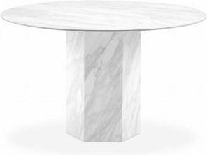 %description% WYMIARY Wysokość: 74 cm Średnica: 120 cm Max. obciążenie: 50 kg MATERIAŁ HPL Stół na jednej nodze Sahara biały marmur Okrągły stół jadalniany Sahara o średnicy 120 cm w kolorze białego marmuru. Blat jasnego stołu osadzony jest na masywnej nodze, która stanowi jego stabilną podstawę i …