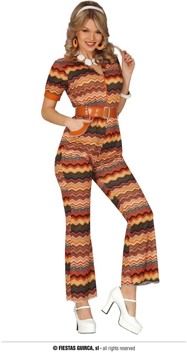 Wracamy do lat siedemdziesiątych! To jest to, co zamierzasz zrobić z tym super fajnym kostiumem Fiestas Guirca. Wszystkie oczy będą skupione na tobie podczas imprezy. Idealny do noszenia podczas karnawału lub fantazyjnej imprezy przebierańców. Specyfikacje: Kolor: brązowy, pomarańczowy Płeć: panie Materiał: 100% poliester Obwód klatki piersiowej: 90 do 100 cm Obwód w talii: 70 do 73 cm Obwód biodra: 97 do 99 cm Rozmiar: 38/40 Zawartość: 1 Kombinezon 1 pasek