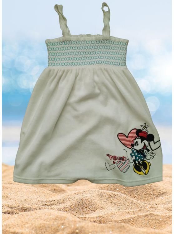 Urocza sukienka plażowa z miękkiej frotte z postacią Myszki Minnie z kolekcji Disney. Idealna na lato – świetnie sprawdzi się na plażę, basen czy letni spacer. Sukienka na ramiączkach z elastycznym karczkiem, który zapewnia wygodę i dopasowanie. Rozmiar 104 (dla dziewczynki ok. 4 lata). Lekka, przewiewna i przyjemna w dotyku – obowiązkowy element wakacyjnej garderoby małej fanki Disneya!