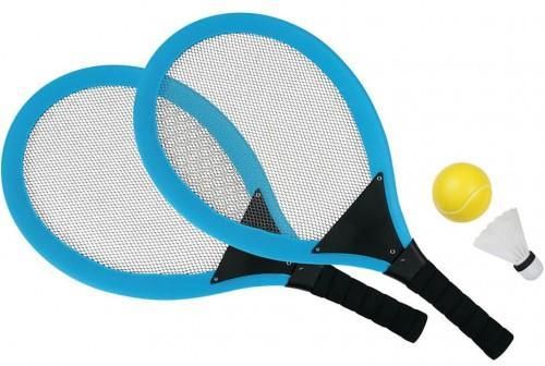 Gra plenerowa dla dzieci Sunflex zachęca do aktywności na świeżym powietrzu w gronie rodzinnym lub z rówieśnikami. W zestawie znajdują się dwie rakiety, miękka piłeczka oraz lotka, takie połączenie pozwoli rozegrać turniej badmintona lub tenisa. Główka rakiety została pokryta elastyczną siatką, a uchwytny wykończono miękką pianką, dlatego prezentowany zestaw to najlepszy wybór dla aktywnych dzieci. Gra sprawi dużo frajdy oraz pozwoli trenować koordynację ręka-oko. Dane techniczne:· 2 rakiety· 1 piłka w kształcie piłki tenisowej· 1 lotka· długość rakiety: 53 cm· wiek: 5+