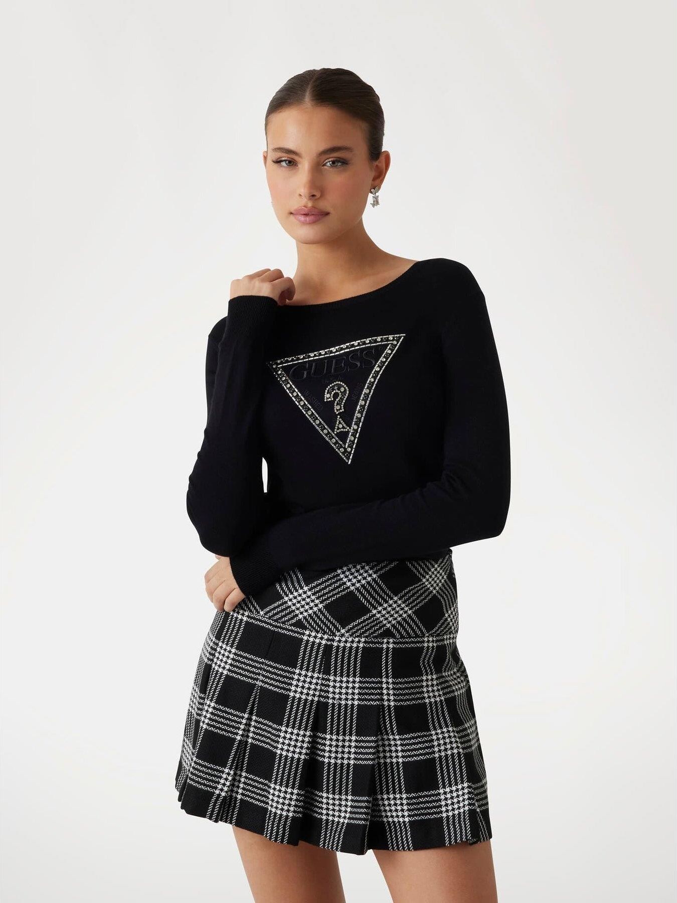 Czarny damski sweter Ivory, marki Guess.Na zdjęciu produkt w rozmiarze: S.Wymiary produktu w rozmiarze S: szerokość pod pachami: 41 cm, długość całkowita: 59,5 cm.