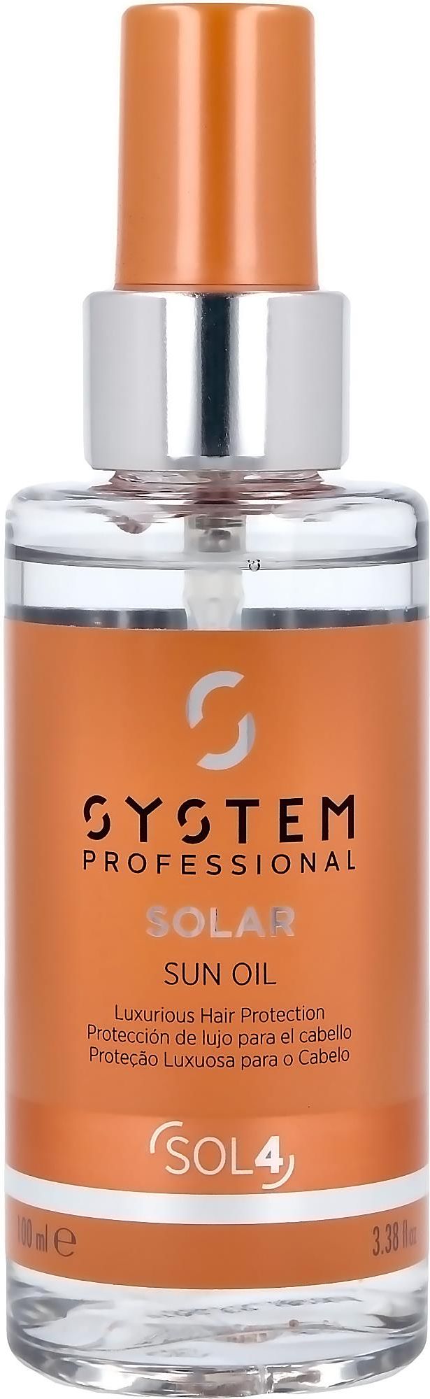 System Professional Solar Sun Oil olejek chroniący włosy przed promieniowaniem UV Solar Sun Oil [SOL4]olejek do włosów chroniący keratynę przed promieniowaniem UV Olejek System Professional Solar Sun Oil przeznaczony jest do włosów włosów narażonych na kontakt ze słońcem, solą i chlorem. Zawarte w składzie fltry UV połączone z luksusową kompozycją olejków głęboko odżywiają włosy i chronią keratynę. Kosmetyk dodaje włosom miękkości i chroni je przed promieniowaniem słonecznym. Luksusowa kompozycja olejków głęboko odżywia, zapewniając włosom efekt długotrwałego wygładzenia. Olejek zawiera kompleks HelioRestore, który regeneruje włosy zniszczone przez słońce i intensywnie odbudowuje poziom nawilżenia obniżony przez kontakt z wodą słoną i chlorowaną. Jednocześnie błyskawicznie poprawia podatność włosów na rozczesywanie. Olejek Solar redukuje puszenie i wygładza włosy, pozostawiając je miękkie, jedwabiste w dotyku i naturalnie błyszczące.Zawarty w olejku kompleks HelioRestore wnika w głąb włosa, odbudowuje jego strukturę i podnosi poziom nawilżenia. Dodatkowo kompleks LipidCode™ poprawia podatność włosów i dodaje skórze głowy energii. Olejek arganowy odżywia włosy, olejek z nasion kamelii ma właściwości antyoksydacyjne. Oliwa z oliwek chroni włosy podczas opalania.Pojemność: 100 ml Gama Solar Linia Solar opracowana została z myślą o ochronie włosów przed szkodliwym działaniem promieni słonecznych. Kosmetyki odżywiają i nawilżają włosy, chronią je przed promieniowaniem, nadają połysk, chronią przed blaknięciem koloru i ułatwiają rozczesywanie włosów.Po opalaniu należy usunąć z powierzchni włosów i skóry głowy osady z filtrów słonecznych, soli i wody chlorowanej. Pomoże to zregenerować włosy i przywrócić im odpowiedni poziom nawilżenia. Kiedy kompleks HelioRestore wnika w głąb włosa, odbudowuje jego strukturę i podnosi poziom nawilżenia.Ochrona włosów przez kompleks HelioGuard sprawia, że są otulone, mniej promieni UV niszczy ich kolor, który dzięki temu dłużej zachowuje swoją intensywność. Filtry UV pochłaniają promieniowanie słoneczne. Olejek z awokado chroni przed utratą wilgoci. Polimery kationowe regenerują uszkodzone partie włosów. Sposób użycia Podczas ekspozycji na słońce: uwolnij 4-5 porcji olejkui nałóż na włosy przed opalaniem.Po opalaniu: nałóż na wilgotne włosy przed suszeniem, aby zapewnić im ochronę i miękkość. Olejek nałożony na wilgotne włosy zapobiega ich puszeniu się.Aplikacja z odżywką: zmieszaj 5 porcji olejku z formułą Sun Conditioner, aby nadać włosom miękkości.
