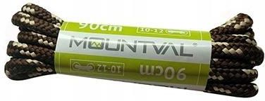 Brązowo-beżowe, trekkingowe sznurówki do butów, 90 cm, Mountval idealne do nawlekania 10-12 oczek w cholewce obuwiowej.