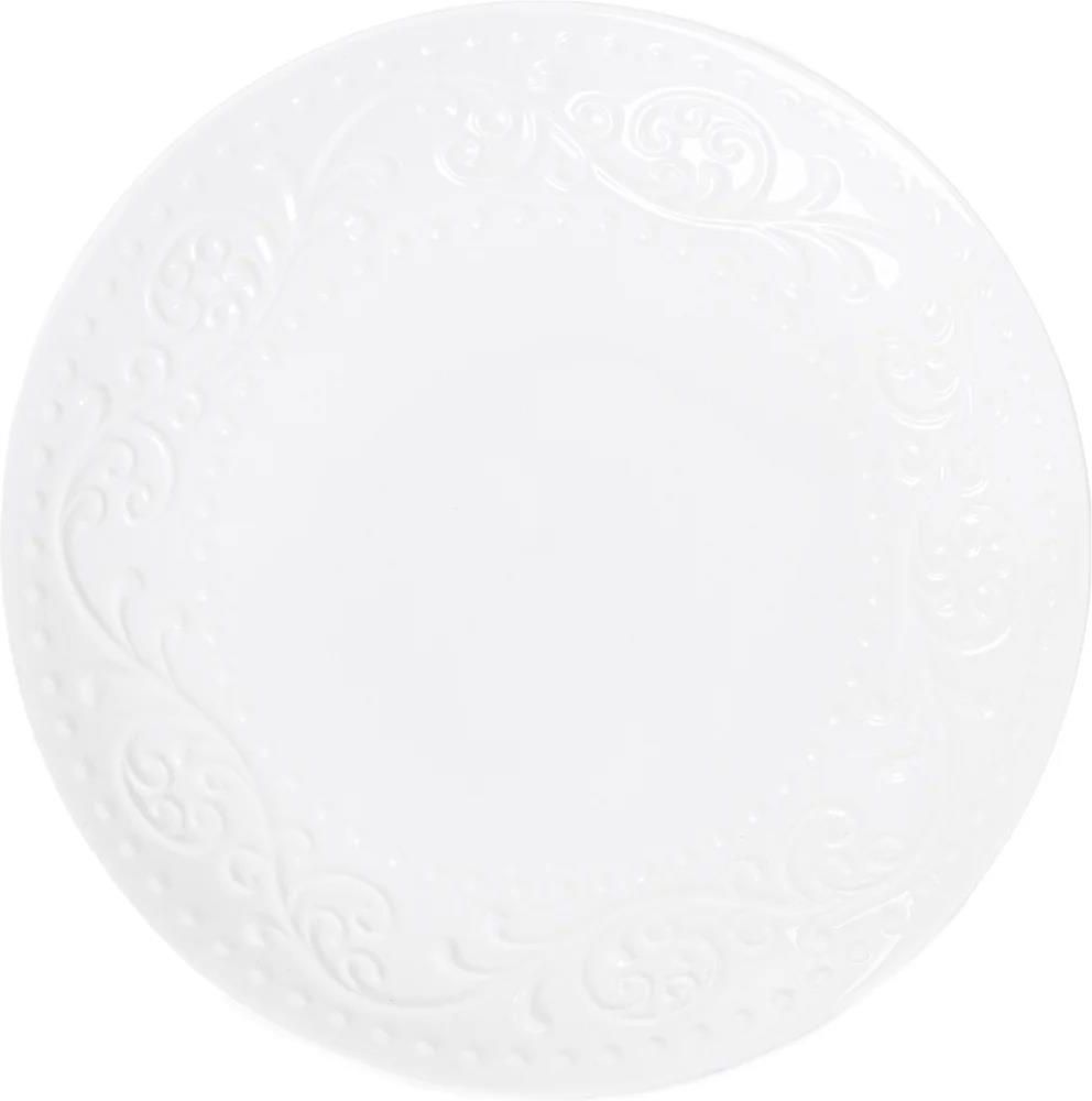 Talerz | SYLIA | obiadowy biały z ornamentem | 27 cm | 844008 Kod produktu: 213937 Producent: HOMLA Wysokiej jakości porcelana Piękny wypukły ornament Średnica: 28 cm Średnica dna: 17 cm Talerz obiadowy z ornamentem porcelanowy Talerz obiadowy SYLIA wykonany z wysokiej jakości porcelany, dekorowany …