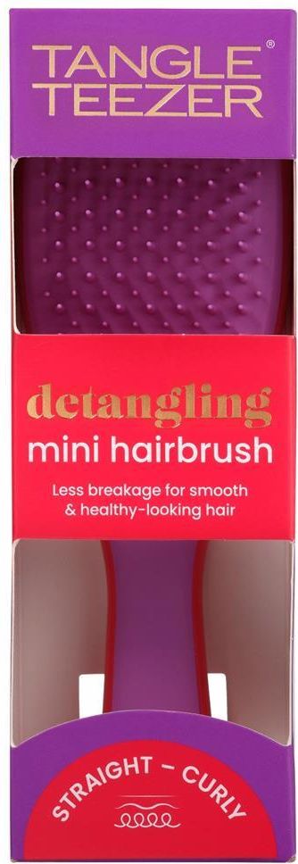 The Wet Detangler Mini to zmniejszona wersja szczotki do rozczesywania włosów mokrych, która dobrze sprawdzi się do wczesywania masek lub odżywek. Posiada wygodną rączkę, dzięki czemu nie wysuwa się z dłoni podczas korzystania z niej pod prysznicem. Dzięki unikalnym ząbkom o elastycznej strukturze, rozplątuje włosy bez łamania i nadmiernego ciągnięcia. Można jej używać także do włosów suchych, aby nadać im gładkość i połysk. Kolor: Red Purple BB Szczotkuj włosy mniejszymi pasmami zaczynając od nasady i przesuwając szczotkę ku końcówkom. Do jakiego typu włosów najlepiej używać Tangle Teezera? Tangle Teezer nie jest szczotką uniwersalną do każdego typu włosów. Elastyczne włókno w dwupoziomowych układzie ząbków i gęstym jego rozstawieniu pozwala na rozczesywanie włosów delikatnych i cienkich – w klasycznej wersji, modelu The Original! Nie jest on przeznaczony dla włosów mokrych, słabych, bardzo cienkich, grubych, kręconych czy do masażu głowy. Do różnych typów włosów stworzyliśmy oddzielne rodzaje szczotek: Thick& Curly – model przeznaczony do włosów kręconych i grubych, z dłuższymi, mocniejszymi ząbkami. Fine&Fragile – do włosów cienkich i delikatnych. Dzięki miękkiemu materiałowi nadaje się do włosów z tendencją do wypadania. Można masować nim skórę głowy, aby pobudzić cebulki włosów. Compact Styler – kompaktowa szczotka z krótszymi ząbkami, świetnie sprawdzi się dla włosów cienkich i dla szybkich poprawek fryzury w ciągu dnia. Jej nakładka zabezpieczająca chroni ząbki przed uszkodzeniami. Back Combing - grzebień stworzony do wszystkich typów włosów, by nadać im objętości. Posiada unikalny układ ząbków: krótkich i długich ułożonych na dwóch poziomach. Sprawdzi się do tworzenia fryzur. The Wet Detanger - posiada wygodną rączkę, która ułatwienie rozczesywanie. Ma dłuższe, elastyczne, grubsze ząbki, dzięki czemu nadaje się do włosów mokrych = podatnych na uszkodzenia. Easy, Dry & Go - do suszenia i stylizacji mokrych włosów. Szybko i bez problemu pomoże w ułożeniu - kręcone włosy wyprostuje, a prostym włosom doda blasku. Plant Brush - bardziej przyjazna dla planety. Nadaje się do recyklingu. Razem z nią możesz cieszyć się gładszymi i zdrowszymi włosami, w zgodzie z dbaniem o naszą planetę. Nadaje się do każdego rodzaju włosów. Łagodnie i bezboleśnie rozczesuje splątane kosmyki bez ciągnięcia i wyrywania. Poznaj markę Tangle Teezer. Rewolucyjne szczotki, które stały się absolutnym hitem wśród akcesoriów do rozczesywania włosów. Stworzył je angielski fryzjer gwiazd – Shaun Paulfrey w 2004 roku. Dzisiaj 8 szczotek Tangle Teezer sprzedawanych jest na świecie co minutę! Swój sukces gwarantują nie tylko swojemu twórcy, ale także rewolucyjnej technologii, która sprawiła, że są niezastąpione w pielęgnacji włosów. Szczotka poradzi sobie nawet z mocno splątanymi czy kręconymi włosami. Czesanie stało się niewiarygodnie proste, a dodatkowo nie ma ryzyka uszkodzenia włosów czy nieprzyjemnego szarpania. Wejdź do świata pięknych, zdrowych włosów i wybieraj spośród wielu specjalistycznych modeli oraz cudownych kolorów. Odwiedź stronę www.zdroweczesanie.pl i poznaj odpowiedzi na nurtujące Cię pytania: Po co czeszemy włosy? W jaki sposób czesać włosy, by się nie łamały, nie rozwarstwiały? Jak zapobiec łamaniu włosów podczas czesania? Ile razy dziennie powinniśmy czesać włosy, by ich nie przeciążać? Czy jakość / materiał ząbków szczotki mogą wnikać w strukturę włosa i go dzielić? Po jakim czasie należy wymienić szczotkę?