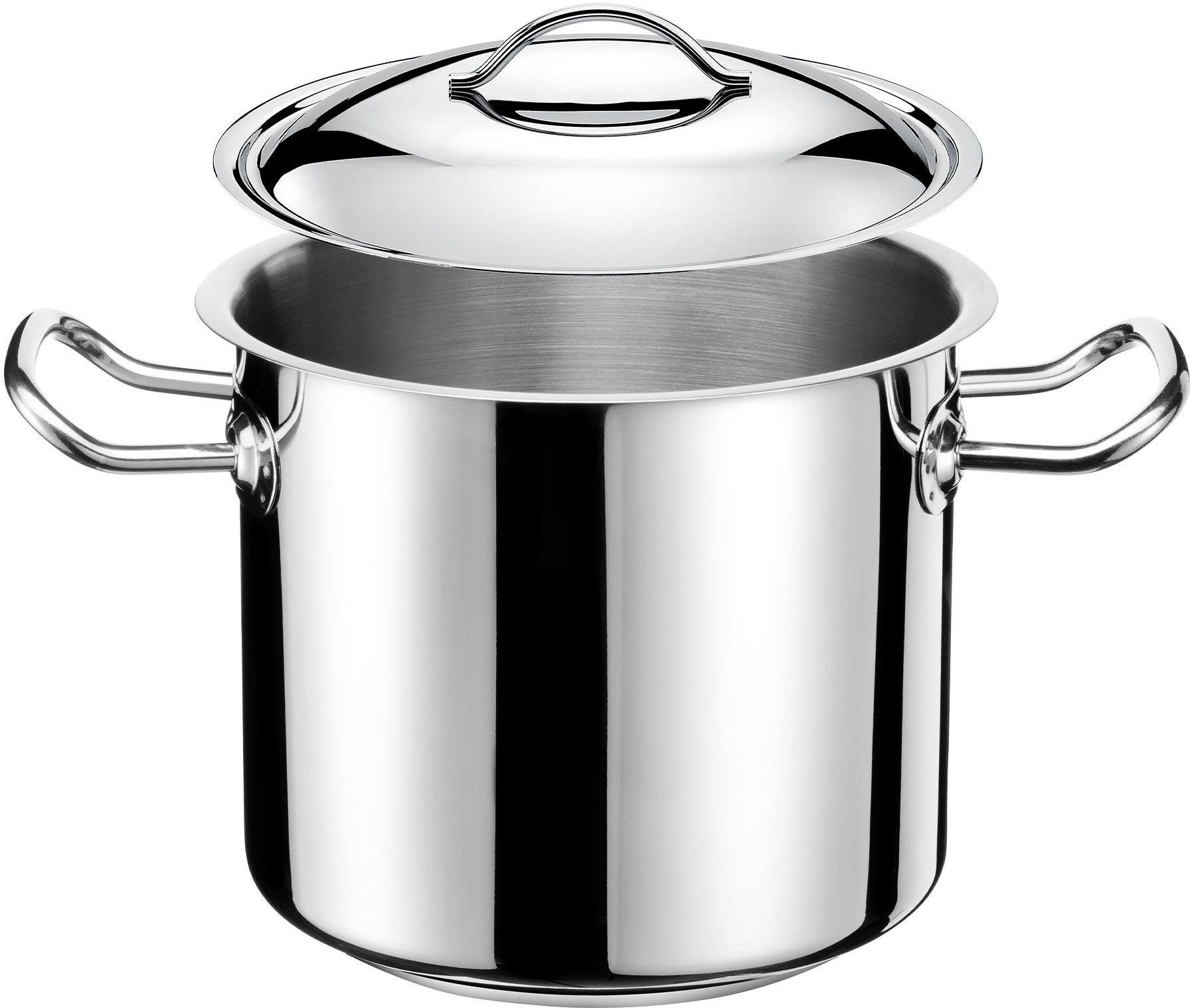 Opis produktu najwyższej jakości stal nierdzewna 18/10 satynowe wykończenie tłoczone z jednego kawałka stali grubość ścianki od 1 mm do 1,2 mm, w części polerowanej grubość 1,32 mm beznitowe mocowanie uchwytów trzywarstwowe aluminiowo-staowe dno (gr.7 mm) uchwyty zgrzewane w 10 punktach do …