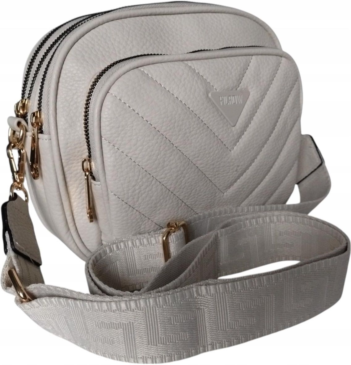Torebka Damska Pikowana, Mała Listonoszka na Ramię Beżowa, Miejska Warszawa