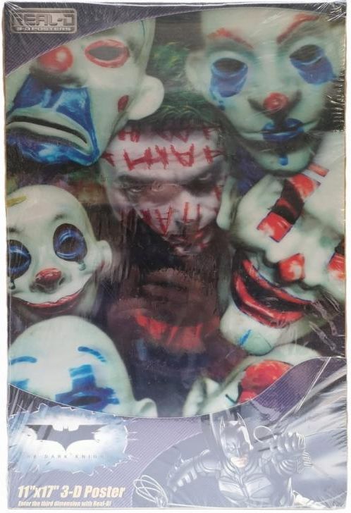 Plakat Real-D 3-D The Dark Knight - Joker Producent: Trends International Kod produktu: DU0009 Kod EAN: 017681900093 Plakat z efektem trójwymiarowym przedstawiający postać z filmu Mroczny Rycerz. Plakat jest nowy i nigdy nie był otwierany, ma oryginalne foliowe opakowanie. Wymiary: 11" x 17" Rok wydania: 2008 Stan opakowania: drobne ryski na folii ochronnej