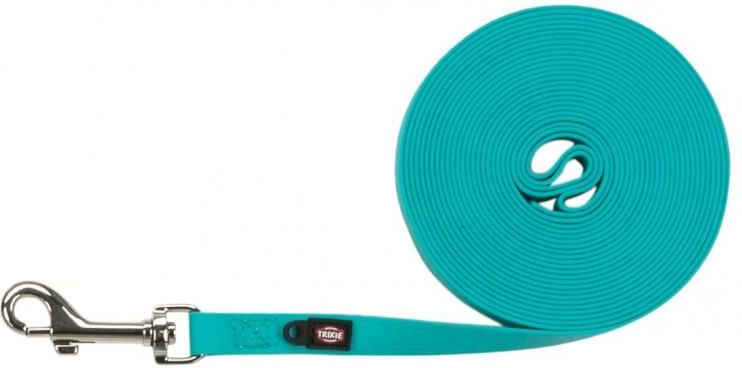 SMYCZ ODBLASKOWA EASY LIFE TRIXIE 5m/13mm MORSKA ✅ Smycz treningowa, wodoodporna. Daje psu swobodę poruszania się, węszenia i zaspokajania swoich psich potrzeb będąc cały czas pod naszą kontrolą. Smycz nie plącze się tak łatwo jak tradycyjne taśmy. Intensywny kolor widoczny jest z dużej odległości. ➡️ Szczegóły produktu: Rozmiar: M-L Długość: 5m Szerokość: 13mm Niemiecka marka: Trixie Kolor: turkusowy (morski błękit) z powłoką PVC wykonana z tworzywa rączka z dodatkowym neoprenowym obiciem łagodząca szarpnięcia psa odporna na rozdarcia wodoodporna, łatwa w czyszczeniu dodatkowy pierścień na podwieszenie np. adresówki lub flashera wytrzymała, nie jest sztywna intensywny, dobrze widoczny kolor doskonała do treningów, spacerów, tropienia ✅ Smycz Treningowa Dla Twojego Psa - Teraz w Wodoodpornej Wersji! ? Smycz treningowa to nieodzowny element wyposażenia każdego właściciela psa. Teraz prezentujemy Ci smycz, która nie tylko zapewni Twojemu psu swobodę poruszania się, ale także jest wodoodporna, dzięki czemu możesz być przygotowany na każdą pogodę. Zobacz, dlaczego nasza smycz treningowa to doskonały wybór! ➡️ Cechy produktu: Wodoodporna i Łatwa w Czyszczeniu - Nasza smycz treningowa została wyposażona w specjalną powłokę PVC, która czyni ją wodoodporną. Nie musisz już martwić się deszczem lub błotem podczas spacerów z psem. Po prostu przetrzyj smycz i jest gotowa do kolejnej przygody! Trwała i Odporna na Rozdarcia - Smycz jest wykonana z tworzywa o podwyższonej wytrzymałości, co sprawia, że jest odporna na rozdarcia. Niezależnie od tego, czy Twój pies jest szczeniakiem pełnym energii, czy dorosłym psem, smycz sprosta jego aktywnościom. Rączka z Neoprenowym Obiciem - Specjalna rączka z neoprenowym obiciem zapewnia komfort podczas trzymania smyczy. Dzięki temu nie odczujesz szarpania, gdy Twój pies nagle ruszy. Rączka łagodzi szarpnięcia psa, co czyni spacery bardziej komfortowymi. Dodatkowy Pierścień na Podwieszenie - Smycz jest wyposażona w dodatkowy pierścień, na którym możesz zawiesić na przykład adresówkę lub flashera. To praktyczne rozwiązanie, które zapewnia bezpieczeństwo Twojego pupila podczas spacerów po zmroku. Intensywny i Dobrze Widoczny Kolor - Intensywny kolor smyczy jest doskonale widoczny z dużej odległości. To zwiększa bezpieczeństwo Twojego psa, zwłaszcza w miejscach o dużym natężeniu ruchu lub w trudnych warunkach pogodowych. Doskonała do Treningów i Spacerów - Nasza smycz treningowa nadaje się doskonale do różnych aktywności z psem. Możesz jej używać podczas treningów, spacerów czy nawet podczas tropienia. To wszechstronny produkt, który ułatwi Ci codzienną opiekę nad pupilem. Nie czekaj dłużej! Zamów naszą wodoodporną smycz treningową już teraz i zapewnij swojemu psu wygodę i bezpieczeństwo podczas spacerów i treningów. Twój pupil zasługuje na najlepsze akcesoria!