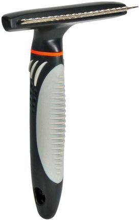 Zgrzebło dla psa. Wykonane z metalu, z plastikową rączką, pokrytą antypoślizgową gumą, ułatwiającą efektywne czesanie. Długie zęby zgrzebła (ok.2cm) są odpowiednie do rozczesywania sierści psów długowłosych, która ma tendencje do splątywania. Zgrzebło firmy TRIXIE jest odpowiednie do intensywnej pielęgnacji wewnętrznej warstwy sierści. TRIXIE - zgrzebło metalowe dla psa długowłosego. Wymiary: 15x11cm.
