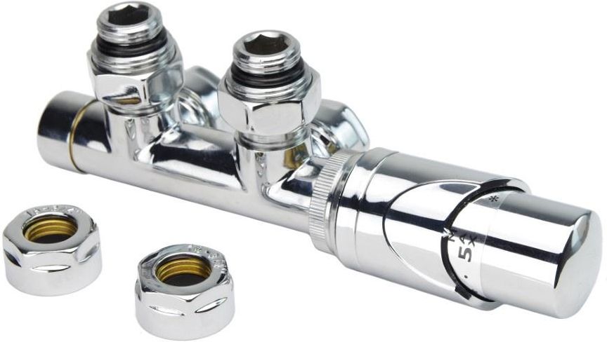 ZESTAW TERMOSTATYCZNY DO GRZEJNIKA DOLNOZASILANEGO KĄTOWY 1/2 cala w kolorze CHROM + ROZETA Z TULEJAMI Dane techniczne: kolor - chrom podłączenie - PEX 16 lub Cu 15 głowica termostatyczna - tak Przyłącze zaprojektowano do grzejników dekoracyjnych i łazienkowych z podłączeniem dolnym i króćcami o …