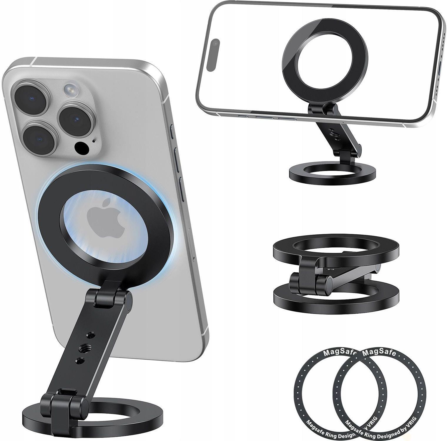 Uchwyt Magnetyczny podwójny - dwustronny - MagSafe do telefonu / smartfona Stabilne mocowanie do powierzchni metalowych dzięki wbudowanemu magnesowi Magnetyczne mocowanie MagSafe — zapewnia szybki, pewny i stabilny montaż telefonów z systemem MagSafe lub za pomocą dołączonego pierścienia …