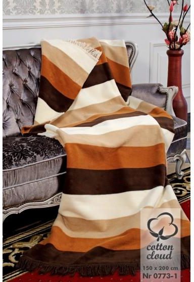 Koc bawełniany akrylowy 150x200 0773/1 beżowy czkoladowy brązowy pasy narzuta pled zapewnia przyjemne ciepło i komfortowy odpoczynek. Jest bardzo cieplutki i milutki w dotyku. Dwustronny koc wykonany jest z mieszanki bawełny i akrylu, a wykończony jest drobnymi frędzelkami. Koc jest dwustronny. …