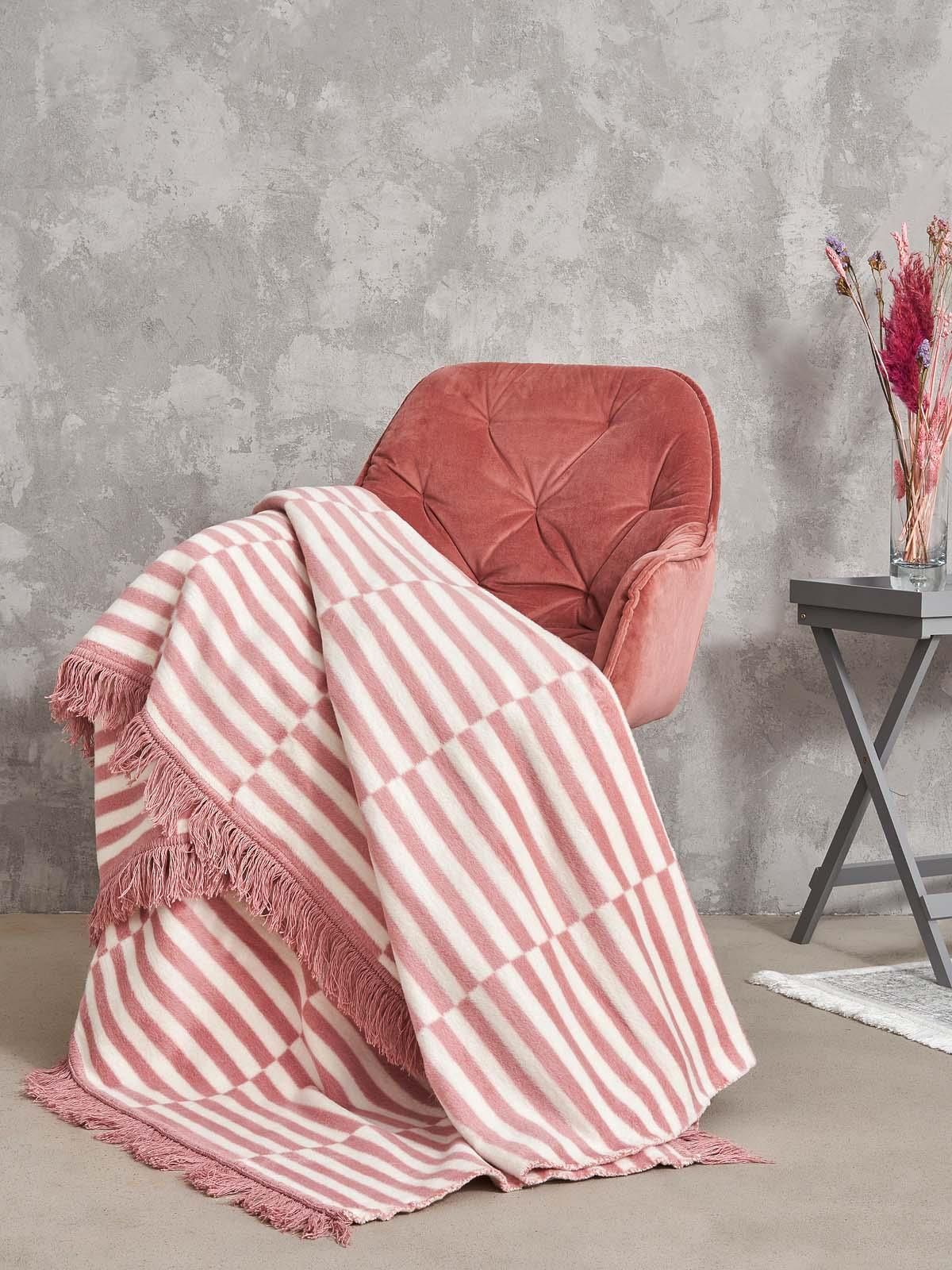 Unia Koc Bawełniano-Akrylowy 150X200 Biały Różowy W Plażowe Paski Warszawa