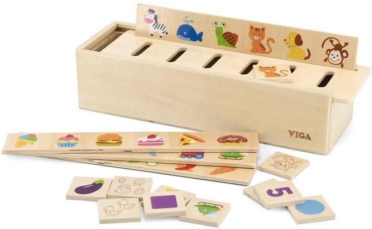 VIGA 44503 SORTER EDUKACYJNY Z OTWORAMI CO WYRÓŻNIA NASZ PRODUKT 1✔️Rozwijanie umiejętności manualnych, koordynacji wzrokowo-ruchowej oraz wyobraźni dziecka poprzez 48 drewnianych klocków w 8 różnych kategoriach tematycznych. Najwyższa jakość materiałów - drewno bukowe oraz nietoksyczne, bezpieczne …
