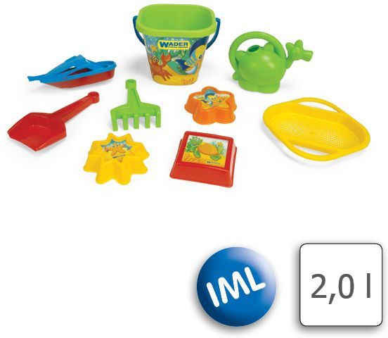 ZESTAW DO PIASKU Z IML - 9 ELEMENTÓW Producent: Wader Kod produktu: 75044 Wiek: 12 m + Materiał: plastik Wymiary opakowania: 30 x 22,5 x 19 cm Waga: 0,34 kg Komplet do Piasku z IML z serii Happy Summer uatrakcyjni każdą letnią zabawę w piasku naszych pociech. Występuje w 2 wersjach kolorystycznych. Każdy zestaw zawiera 9 elementów: łopatkę, grabki, 3 foremki (muszelka, krab i rozgwiazda lub serduszko, gwiazdka i kwiatek), motorówkę, młynek do piasku lub konewkę, sitko i wiaderko o ciekawej grafice wykonanej metodą IML. Dzięki temu wytrzyma ona kontakt z wodą i słońcem. Komplet do Piasku daje możliwość kreatywnej zabawy dziecku, zarówno w towarzystwie, jak i bez. Zestaw pobudza wyobraźnię i twórcze myślenie. Daje szansę poznania nowych kolorów oraz poznania nowych znajomych do wspólnej zabawy. Zabawa wspiera aktywność ruchową dzieci, poprawia ich koordynację wzrokowo-ruchową i sprawność motoryczną oraz uczy współpracy w grupie. Całość w żywej, letniej kolorystyce, wyprodukowana w Polsce z nietoksycznych, bezpiecznych i wytrzymałych materiałów. ZALETY I CECHY PRODUKTU: ✔ występuje w 2 wersjach, każdy zestaw zawiera 9 elementów: ✔ zestaw 1: łopatka, grabki, 3 foremki morskie (muszelka, krab, rozgwiazda), motorówka, konewka o pojemności 0,5 l, sitko i wiaderko o pojemności 2 l ✔ zestaw 2: łopatka, grabki, 3 foremki (serduszko, gwiazdka i kwiatek), sitko, młynek do piasku, motorówka i wiaderko o pojemności 2 l ✔ wszystkie elementy są bezpieczne dla dzieci, wykonane z certyfikowanego i trwałego tworzywa najwyższej jakości ✔ grafika wykonana metodą IML ✔ zestaw umożliwia zabawę w pojedynkę oraz w grupie ✔ zabawa z wykorzystaniem Kompletu do Piasku z IML 9 el. z serii Happy Summer firmy Wader pobudza wyobraźnię, kreatywność i twórcze myślenie dziecka oraz jego sprawność i koordynację ruchową; pomaga w nawiązywaniu kontaktów z innymi dziećmi, uczy współpracy ✔ bezpieczny dla najmłodszych, wiek 1+ Zestaw wysyłany losowo.