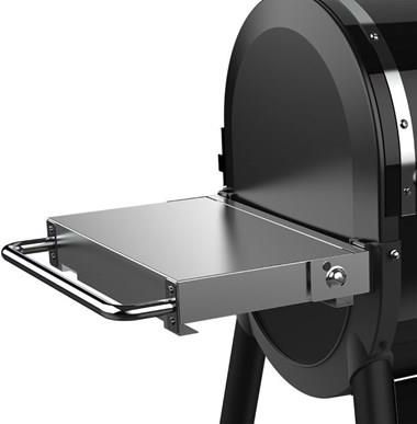 Składany stolik ze stali nierdzewnej do grilla SmokeFire EX4 i EX6 Dzięki składanemu stolikowi ze stali nierdzewnej możemy wygodniej przygotowywać, serwować i przechowywać przybory do grillowania. Stolik boczny zapewnia ponad 1300 cm2 powierzchni roboczej oraz zintegrowany otwieracz do butelek. Stolik mocowany jest z lewej strony grilla, a na czas przechowywania łatwo go złożyć. Mieści się w pokrowcu SmokeFire Premium (sprzedawany oddzielnie) po złożeniu w górę i w dół. Stolik dedykowany jest jest do grilli SmokeFire EX4 oraz EX6.