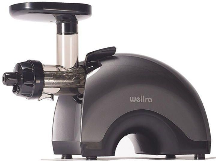 Nowoczesna wyciskarka dwuślimakowa pozioma Wellra. Po wielu latach użytkowania tradycyjnych wyciskarek dwuślimakowych, pojawił się nowoczesny model, który zachował tradycyjne rozwiązania , wprowadzając do konstrukcji wyciskarki współczesne, nowoczesne rozwiązania . Dzięki takiemu połączeniu mamy zachowaną najwyższą wydajność wyciskania, pyszny, jednolity i odżywczy sok, zdecydowanie łatwiejsze czyszczenie i znacznie mniejsze rozmiary. Prosty, nieskomplikowany wygląd wyciskarki pasuje pod kuchnie tradycyjne jak i wykonane w nowoczesnym stylu. Wyciskarka Wellra to wyciskarka dwuślimakowa, dzięki czemu doskonale sprawdza się przy wyciskaniu naci, warzyw , ale również owoców . Wyciskarka Wellra posiada również kilkustopniowy regulator wypływu pulpy, który znajduje się tylko w najlepszych wyciskarkach poziomych, a dzięki niemu wyciskanie jest jeszcze dokładniejsze. W zestawie do wyciskarki - w przeciwieństwie do innych podobnych, bliźniaczych - znajdują się aż trzy nakładki - do soków, do soków gęstych i wkładka homogenizacyjna. Znana, dobra konstrukcja wałków, dokonuje maksymalnego wyciśnięcia soku niezależnie od typu produktu. W pierwszej fazie następuje rozdrabnianie i miażdzenie, a w ostatnim momencie, maksymalne wyciśnięcie. Wałki są też napędzane przez mocny silnik o mocy 3 KM. Nawiązując do czyszczenia, teraz wystarczą trzy proste ruchy, aby zdemontować moduł wyciskający, po czym elementy wyciskające przepłukujemy pod strumieniem wody. W skład wyciskarki wchodzi: - trzy rodzaje sit - pojemnik na sok i na pulpę - modyfikator wypływu pulpy - popychacze, szczoteczka, klucz do łatwego odkręcania i zakecania - gwarancja oraz instrukajca w języku polskim oraz angielskim