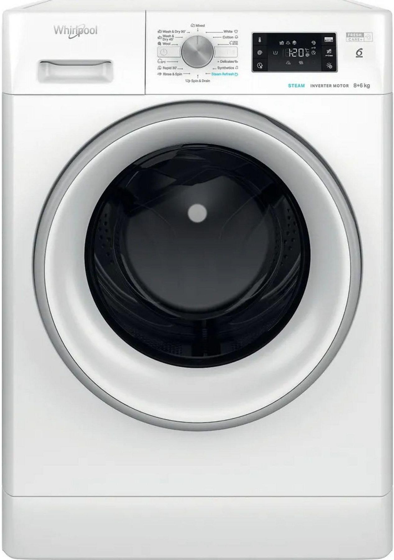 Whirlpool Pralko-suszarka wolnostojący - FFWDB 864489 SV EE, Od przodu, Wolnostojący, Biały, Lewy, Szary, Biały, Przyciski, obrotowy Pralko-suszarka łączy skuteczność prania i suszenia w jednym urządzeniu, oszczędzając miejsce i czas. Technologia 6. Zmysł stale monitoruje poziom wilgoci, chroniąc …