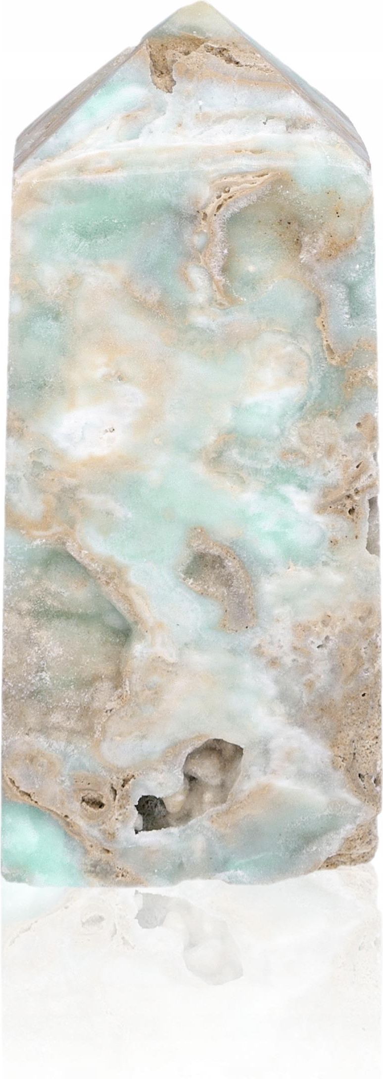 Wieża z kamienia hemimorfit Wyjątkowa wieża z hemimorfitu Minerał zachwyca pasmami intensywnego błękitu i bieli, przeplatającymi się z ciemniejszymi tonami beżu oraz szarości. Hemimorfit jest ceniony głównie przez kolekcjonerów i rzadko trafia do wyrobów jubilerskich. Jego kremowe, niebieskie i niebieskozielone barwy sprawiają, że doskonale sprawdza się jako dekoracyjny akcent w różnych aranżacjach. Okazy o większych rozmiarach należą do wyjątkowych. Chociaż hemimorfit występuje w wielu regionach świata w sąsiedztwie złóż cynku, tylko nieliczne egzemplarze nadają się na kamienie szlachetne. Każdy kryształ zachwyca niepowtarzalnym kształtem i strukturą. Każdy wzór na powierzchni kamienia jest jedyny w swoim rodzaju. To w 100% naturalny minerał, który może zawierać naturalne przebarwienia, inkluzje, pęknięcia, zagłębienia oraz rysy. Informacje Wysokość: około 6 cm Waga: około 69 g Kamień: hemimorfit Kształt: obelisk / wieża, podstawa w kształcie zbliżonym do prostokąta Kolor: odcienie fioletu, różu, bieli, szarości Oszlifowany kamień naturalny Wieżę otrzymasz w materiałowym woreczku. Cena dotyczy 1 sztuki przedstawionej na zdjęciu głównym. Jak wykorzystać wieżę z kamienia naturalnego? Dekoracja wnętrz Wieża z kamienia naturalnego to elegancki element dekoracyjny, który dodaje charakteru każdemu wnętrzu. Jej geometryczny kształt i naturalne piękno przyciągają uwagę, wprowadzając harmonię do przestrzeni. Medytacja Obeliski są często używane w medytacji, ponieważ ich pionowa forma wspomaga przepływ energii, ułatwiając koncentrację i połączenie z wyższymi wymiarami świadomości. Pomagają w uzyskaniu wewnętrznej harmonii i spokoju. W niektórych tradycjach obeliski są umieszczane w różnych miejscach domu lub biura, aby chronić przed negatywną energią i wzmacniać aurę ochronną. Hemimorfit symbolika Uważa się, że hemimorfit jest kamieniem empatii. Pomaga w komunikacji uczuć i regulacji wewnętrznych emocji. Pozwala oderwać się od własnego ego i doprowadzić do duchowego wzrostu. Zachęca do samodyscypliny i samoregulacji. Wspiera tych, którzy zmagają się z rozproszeniem uwagi.