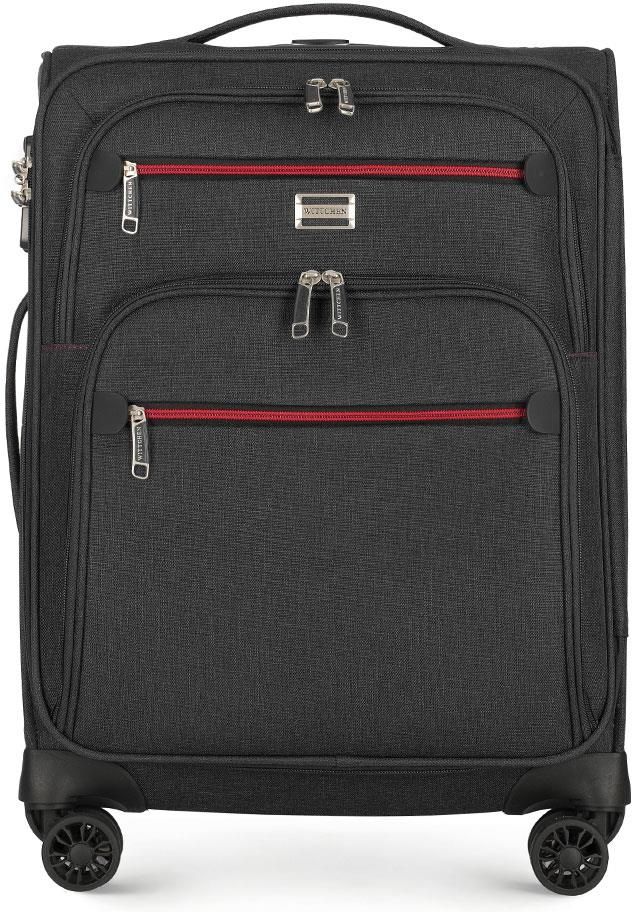 Walizka kabinowa WITTCHEN z kolorowym suwakiem 56-3S-501-12 grafitowa. Budowa walizka na 4 trwałych, obrotowych kołach, komora na klapie walizki z siatką zamykaną na suwak, wysuwana, teleskopowa rączka, w komorze głównej pasy zapobiegające przesuwaniu się garderoby oraz kieszonka zamykana na suwak, zamek szyfrowy TSA, dwie rączki do przenoszenia; dwie kieszenie z gumką; dwie zamykane na suwak kieszenie zewnętrzne, waga: 3,7kg, pojemność: 40/45l. spełnia wymagania bagażu kabinowego wymiary walizki z wystającymi elementami 56x38x22cm, Wymiary obejmują również elementy wystające, takie jak rączki czy kółka. Wymiary są przybliżone i mogą się różnić +/- 5%, kolekcja Comfort Line II . Wbrew pozorom bagaż miękki posiada całą gamę zalet. Jego największą, ale nie jedyną zaletą jest wysoka elastyczność oraz wytrzymałość. Jest lekki, odporny na działanie promieni UV, ścieranie czy działanie substancji chemicznych. Miękki model walizki to doskonały wybór dla osób ceniących sobie trwałość, pojemność oraz komfort. Wittchen Marka WITTCHEN jest laureatem wielu prestiżowych nagród i wyróżnień, które potwierdzają jej pozycję na rynku dóbr luksusowych. Wszystkie wyroby WITTCHEN są sygnowane charakterystycznym logo, które potwierdza klasę i ekskluzywność każdego produktu. Klienci cenią produkty marki za elegancki styl, najwyższą jakość oraz doskonałe wykończenie. Kolekcja Comfort Line IINiezwykle lekkie walizki na trwałych i stabilnych kółkach umożliwiających swobodne prowadzenie bagażu. Wewnątrz zostały zamieszczone pasy zabezpieczające przed przemieszczaniem się bagażu. Produkty wykonane z mocnego materiału łatwego do pielęgnacji.