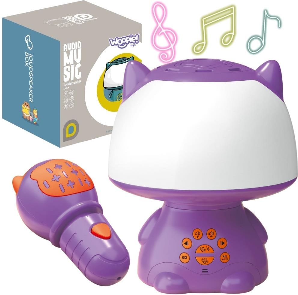 Kod produktu: 14154 Lampka RGB z wbudowanym głośnikiem marki Woopie zamieni każdy pokój w muzyczną scenę! Interaktywny głośnik w kształcie kotka z przewodowym mikrofonem pozwala dzieciom śpiewać, słuchać ulubionych piosenek i cieszyć się kolorowym podświetleniem. System dźwięku stereo 360° pozwala …