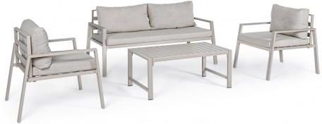%description% WYMIARY Sofa: wys. 82 cm, szer. 114 cm, gł. 70 cm Fotele: wys. 82 cm, szer. 65 cm, gł. 70 cm Stolik: wys. 46 cm, szer. 90 cm, gł. 50 cm MATERIAŁ Rama: aluminium malowane proszkowo Pokrowiec poduszki: przędza poliestrowa Wypoczynkowy zestaw ogrodowy szary Lorillard Wypoczynkowy zestaw …