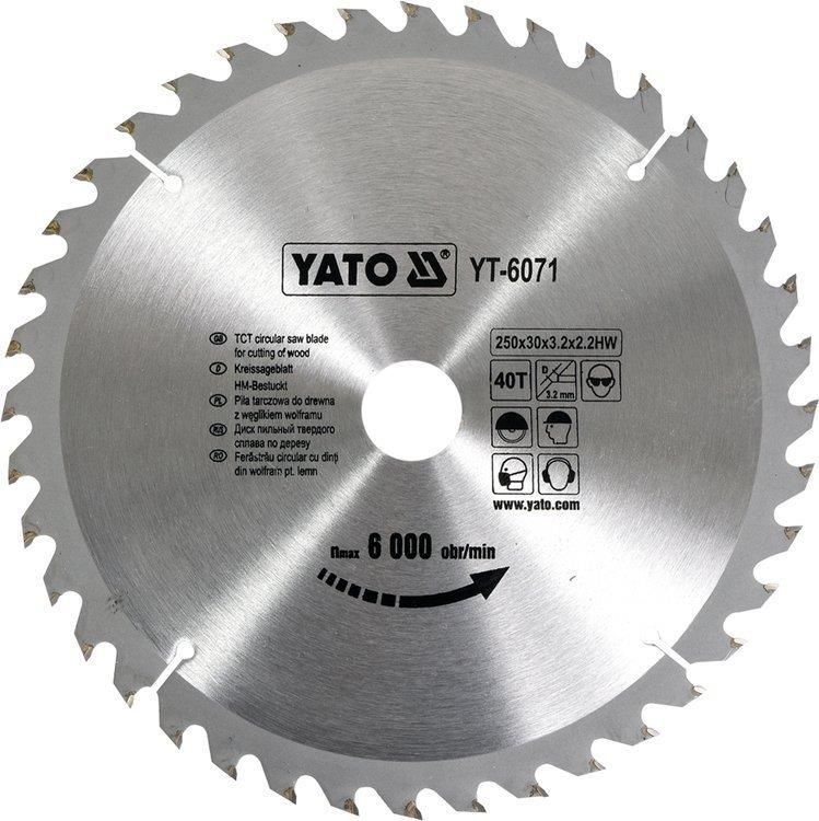 Tarcza widiowa do pilarek Yato YT-6071: Profesjonalna, wysokiej jakości tarcza do cięcia drewna Doskonała jakość cięcia dzięki zastosowaniu widiowych zakończeń zębów, do zastosowań profesjonalnych w warsztatach stolarskich Przeznaczona do cięcia drewna, płyt drewnopodobnych (płyty wiórowe, sklejki, OSB) i tworzyw sztucznych Najlepsze materiały gwarantują wysoką trwałość tarcz Precyzyjnie wykonane Średnica zewnętrzna: 250 mm Średnica otworu: 30 mm Szerokość cięcia: 3.2 mm Grubość korpusu: 2.2 mm Liczba zębów: 40