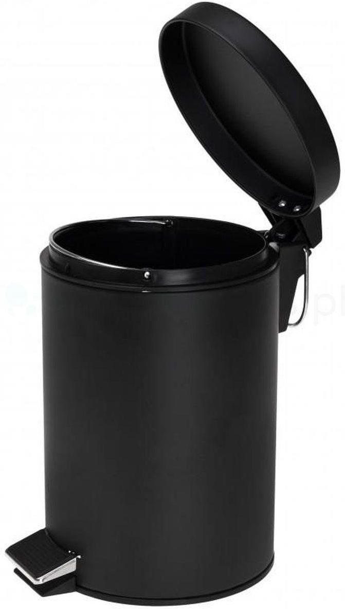 Kosz na śmieci do łazienki 3L, czarny. Kosz na śmieci do łazienki.Czarny, matowy kosz łazienkowy to nie tylko praktyczne wyposażenie, ale również stylowy dodatek, który podkreśli elegancki charakter Twojej łazienki. Soft-close dla cichego użytkowania. Wbudowany mechanizm soft-close zapewnia ciche i delikatne zamykanie pokrywy, co minimalizuje hałas i zwiększa komfort użytkowania. ​Kosz na śmieci wykonany jest z wysokiej jakości stali nierdzewnej, malowanej proszkowo na elegancki, matowy czarny kolor. Solidna konstrukcja zapewnia trwałość i odporność na uszkodzenia. Plastikowy pojemnik wewnątrz kosza o pojemności 3 litrów, jest łatwy do wyjęcia i czyszczenia. Uchwyt z tyłu pojemnika ułatwia przenoszenie, a metalowa klamra na wewnętrznej stronie pokrywy utrzymuje worek na śmieci na swoim miejscu. Maksymalna wysokość przy otwartej pokrywie to 39 cm. Produkt posiada antypoślizgową, gumową podstawę, do wszystkich rodzajów podłóg. Wymiary: 17.5 x 22 cm. Estetyczny wyglądKosz utrzymany w eleganckim i minimalistycznym stylu, doskonale wpasuje się w nowoczesną łazienkę, dodając jej klasy i wyrafinowania. Pedal umożliwia bezdotykowe otwieranie pokrywy, co jest nie tylko higieniczne, ale również wygodne w codziennym użytkowaniu. Antypoślizgowa podstawa stabilizuje kosz na różnych powierzchniach, zapobiegając przypadkowemu przewróceniu. Metalowy uchwyt ułatwia przenoszenie kosza w dogodne miejsce. Idealne dopasowanie Dzięki swojemu stylowemu wyglądowi i przemyślanej konstrukcji, nasz kosz łazienkowy doskonale wpasuje się w każdą łazienkę, dodając jej elegancji i funkcjonalności. Staranne malowanie proszkowe gwarantuje trwałość koloru i odporność na zarysowania, utrzymując kosz w nienagannym stanie przez długi czas. Wygoda i styl w jednym – nasz czarny, matowy kosz łazienkowy to doskonały wybór dla osób ceniących sobie zarówno estetykę, jak i funkcjonalność.