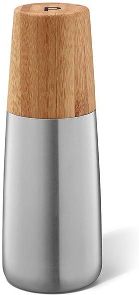Wprowadź do swojej kuchni nowoczesny design! Młynek do pieprzu Zack Bevo będzie dyskretną ozdobą jadalnianego stołu albo kuchennego blatu. Akcesorium wyróżnia się prostą formą i minimalistycznym wzornictwem. Warto zwrócić uwagę na interesujące połączenie drewna bambusowego i stali szlachetnej o eleganckim, matowym wykończeniu. Młynek wyposażono w solidny, ceramiczny mechanizm mielący. Dzięki oznaczeniu w kształcie litery P nigdy nie pomylisz go z solniczką. Nie można myć w zmywarce.