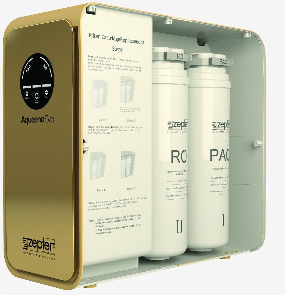Filtr wymienny RO do AQUEENA EVO Zepter- odwrócona osmoza, Kod produktu : WT-600 Woda to filar zdrowia. Zadbaj o jej jakość i zapewnij sobie dostęp do źródła w 99,9% czystej, zdrowej wody. Zalecany cykl wymiany filtra RO - 12-18 miesięcy (Uwaga: ze względu na różnicę w jakości wody zasilającej i zużyciu wody, powyższe dane są jedynie szacunkowe.)PRODUKT:Filtr do odwróconej osmozy (RO) do filtra AQUEENA EVE ZEPTER gwarantuje wysoką wydajność usuwania:Redukuje sole nieorganiczne, związki organiczne, metale ciężkie, minerały (wapń/magnez) i mikroorganizmy.Precyzyjna filtracja końcowa z dokładnością do 5 mikronówZapewnia oczyszczoną jakość wody poprzez wychwytywanie wszelkich pozostałych cząstek stałych._____________Jak określić termin wymiany filtra?Panel sterowania FILTRA WODY Aqueena Evo ZEPTER WT-600 jest wyposażony w jeden przycisk i dwa wskaźniki służące do obsługi systemu i wyświetlania okresu eksploatacji filtrów.Wskaźniki ostrzegawcze- Wskaźnik filtra RO ( odwrócona osmoza)- wskazuje, kiedy użytkownik musi wymienić filtr RO. Po podłączeniu zasilania kontrolka pozostaje włączona i miga po upływie okresu eksploatacji filtra.- Przycisk resetowania - Służy do resetowania wkładu filtra, szczegółowe informacje znajdują się w części w części "Wymiana wkładów filtra" w instrukcji obsługi. (Po podłączeniu zasilania lampka kontrolna pozostaje włączona).- Zabezpieczenie - wszystkie lampki kontrolne będą migać, a system przestanie filtrować wodę. Zresetuj system, ponownie podłączając zasilanie.Wydajność filtra zależy od zużycia i jakości wody.Instrukcja wymiany wkładu filtraPrzed zainstalowaniem nowego filtra należy upewnić się, że oznaczenia wyrównania na filtrze i zatrzasku blokującym są prawidłowo dopasowane. Aby bezpiecznie wymienić wkład filtra, należy wykonać następujące czynności:1. Wyłącz zawór wody zasilającej, aby zatrzymać dopływ wody.2. Odkręć kran, aby uwolnić nagromadzone ciśnienie wody w systemie.3. Wyłącz zasilanie, aby zapewnić bezpieczny proces wymiany.Po wykonaniu tych czynności można przystąpić do instalacji nowego filtra 10 korzyści z używania filtra Zepter Aqueena Evo (WT-600) w codziennym funkcjonowaniu: Czysta i bezpieczna woda każdego dnia – bez chemii i metali ciężkichDzięki zaawansowanej filtracji (odwrócona osmoza), eliminujesz z wody szkodliwe substancje: chlor, ołów, pestycydy, azotany, mikroplastik i bakterie – co przekłada się na realne wsparcie zdrowia i odporności Twojej rodziny. Zdrowie Twoje i bliskich pod pełną kontroląCodzienne spożywanie czystej wody poprawia trawienie, kondycję skóry, nerek i układu krążenia. Filtr wody Aqueena Evo Zepter daje Ci pewność, że woda jest wolna od niepożądanych substancji – bez ryzyka dla dzieci, seniorów czy alergików. System filtrowania wody w Aqueena Evo Zepter działa w 7 etapach, w tym etap odwróconej osmozy, dzięki czemu usuwa bakterie, metale ciężkie (ołów, arsen, kadm, rtęć, chrom), chlor, azotany, chlorany, PFOS, PFOA i inne substancje chemiczne- usuwa zanieczyszczenia z wody aż w 99%! Stały dostęp do świeżej wody – prosto z kranuNie musisz kupować, dźwigać ani przechowywać zgrzewek z wodą. Masz czystą wodę zawsze pod ręką – do picia, gotowania, robienia herbaty czy mycia warzyw. Duże oszczędności – nawet kilka tysięcy zł rocznieZamiast wydawać pieniądze na wodę butelkowaną, inwestujesz raz – i korzystasz przez lata. Koszt eksploatacji systemu Aqueena Evo jest wielokrotnie niższy niż ciągłe kupowanie butelek. Zero plastiku – troska o planetę bez wysiłkuOgraniczasz zużycie plastikowych opakowań i ślad węglowy – robisz coś dobrego dla środowiska, bez zmiany codziennych nawyków. Wygoda i oszczędność miejscaKompaktowa konstrukcja Aqueena Evo Zepter pasuje nawet do małych kuchni. Możesz ją umieścić pod zlewem lub na blacie — bez zbiornika i bez kabli na wierzchu. Szybka wymiana filtrów – bez serwisu i narzędziSamodzielnie wymienisz filtr w kilkanaście sekund — czysto, łatwo i bez stresu. Nie potrzebujesz specjalistycznej wiedzy ani dodatkowych kosztów serwisowych. Inteligentny panel LED – zawsze wiesz, kiedy działaSystem sam poinformuje Cię, gdy filtr wymaga wymiany. Masz pełną kontrolę nad jakością wody i stanem urządzenia, bez zgadywania. Filtracja bez czekania – woda gotowa natychmiastSystem filtracji wody Aqueena Evo Zepter działa przepływowo (bez zbiornika), więc nie musisz czekać na napełnienie. Nalewasz wodę od razu – czystą i świeżą. Poczucie bezpieczeństwa i niezależnościNie jesteś już zależny od jakości wody z sieci miejskiej czy butelkowanej. Masz pewność, że to, co pijesz, jest naprawdę czyste – a to daje spokój umysłu.