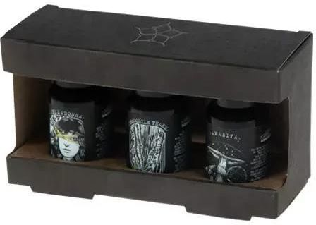 Zestaw 3 olejków do brody Pandora’s Box - Pan Drwal - 3 x 10ml Zestaw 3 olejków do brody Pandora’s Box - Pan Drwal to komplet produktów z uwielbianej serii Freak Show, wyróżniającej się mroczną oprawą graficzną i nietuzinkowymi kompozycjami zapachowymi, inspirowanymi magią i zielarstwem. Trzy miniaturowe wersje kosmetyku to idealny pomysł na prezent dla entuzjasty dbania o zarost lub świetny sposób na poznanie serii i wybranie swojej ulubionej linii. Małe zakręcane buteleczki zapakowane są w estetyczny kartonik i z pewnością urozmaicą łazienkową półkę każdego Brodacza. Kompozycje zapachowe olejków do brody Pandora’s Box - Pan Drwal: 1. Amanita: piżmo, kadzidło, wetiwer, suszone owoce, oud, imbir, akordy skórzane 2. Belladonna: jeżyna z bazylią 3. Crocodile Tears: bay rum Składy olejków do brody Pandora’s Box - Pan Drwal: 1. Amanita: Prunus Amygdalus Dulcis Oil, Simmondsia Chinensis Seed Oil, Argania Spinosa Kernel Oil, Parfum, Tocopheryl Acetate, Cinnamal, Coumarin, Linalool. 2. Belladonna: Prunus Amygdalus Dulcis Oil, Simmondsia Chinensis Seed Oil, Argania Spinosa Kernel Oil, Parfum, Tocopheryl Acetate, Alpha – Isomethyl Ionone, Benzyl Salicylate, Citral, Geraniol, Limonene, Linalool. 3. Crocodile Tears: Prunus Amygdalus Dulcis Oil, Simmondsia Chinensis Seed Oil, Argania Spinosa Kernel Oil, Parfum, Tocopheryl Acetate, Benzyl Salicylate, Citral, Citronellol, Coumarin, Eugenol, Geraniol, Limonene, Linalool. Sposób użycia: Kilka kropel olejku rozgrzej w dłoniach i wmasuj w zarost oraz skórę pod nim, stosuj regularnie.