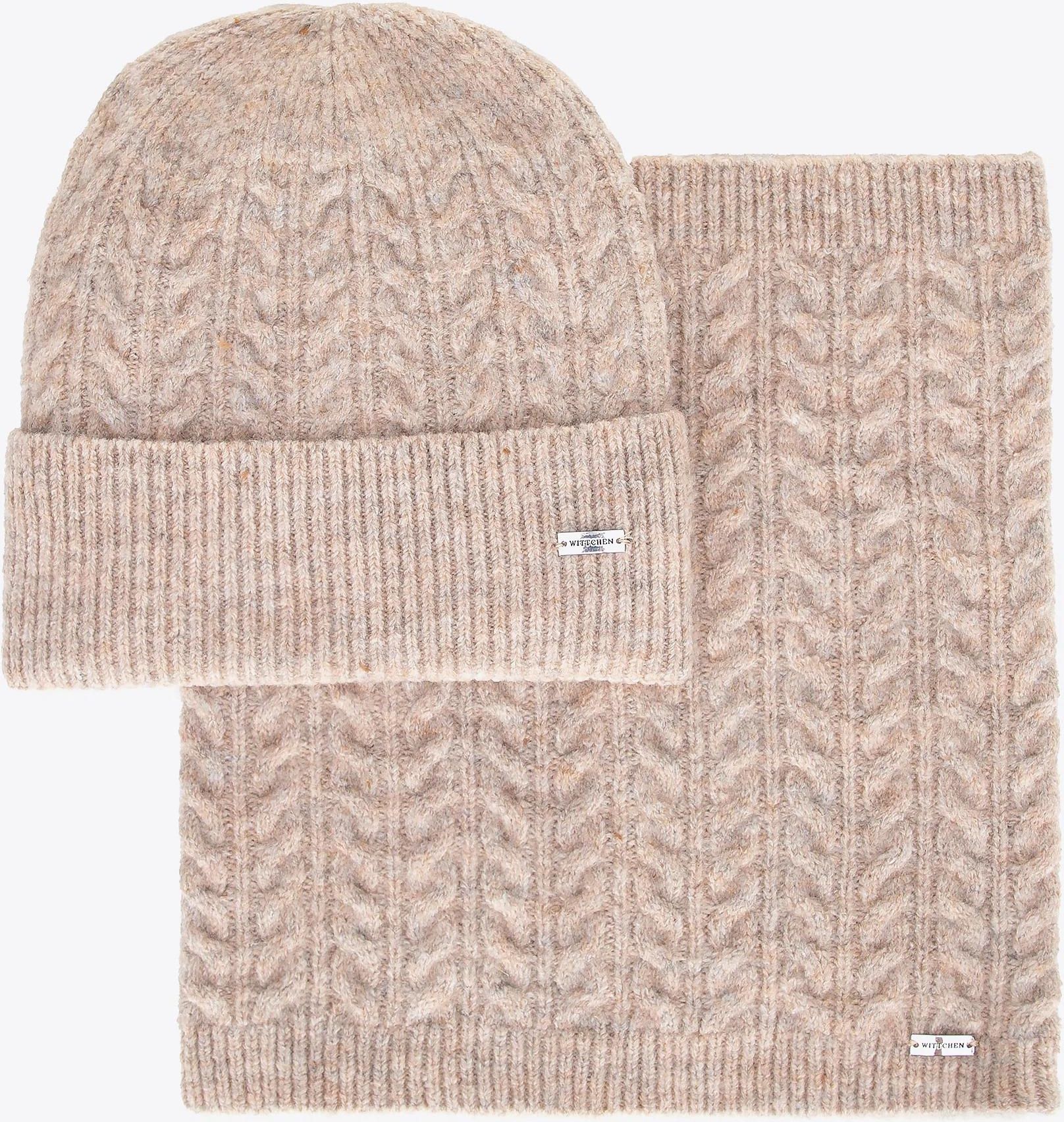 Zestaw damski zimowy – czapka i komin w splot warkoczowy beżowy Warszawa