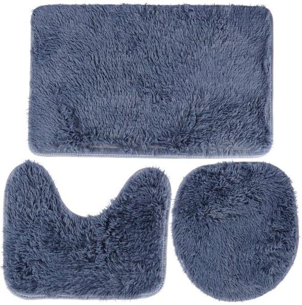 Zestaw trzech dywaników łazienkowych. W zestawie: dywanik, dywanik z wycięciem oraz nakładka na deskę. Wykonane z miłego w dotyku materiału w granatowym kolorze. PRZYDATNY - Zestaw trzech dywaników łazienkowych. W zestawie: 1x dywanik o wymiarach 80 x 49 cm, 1x dywanik z wycięciem o rozmiarach: 49 …