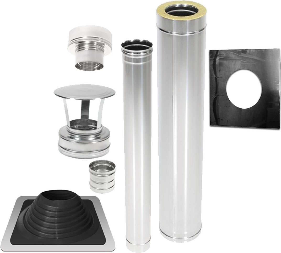 Zestaw kominowy 115/195mm ze stali nierdewnej składający się z: Rura jednościenna 1m 115mm Rura izolowana warstwowa 1m 115/195mm Nasada na rurę izolowaną Adapter do łączenia rur izolowanej i jednościennej Przejściówka do połączenia rury jednościennej z kominem Maskownica sufitowa INOX do rury izolowanej Elastyczna izolacja kominowa na dach Master Flash z gumy EPDM Jest to zestaw z nierdzewki o grubości 0.8mm